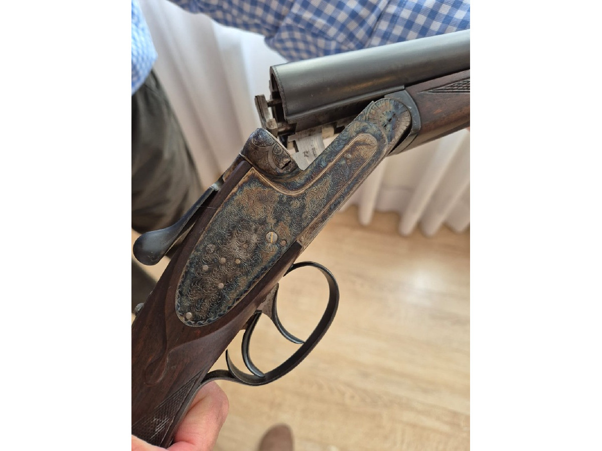 Dos escopetas paralelas marca Aya modelo PR calibre 12. Expulsoras. Ambas en perfecto estado de uso.
