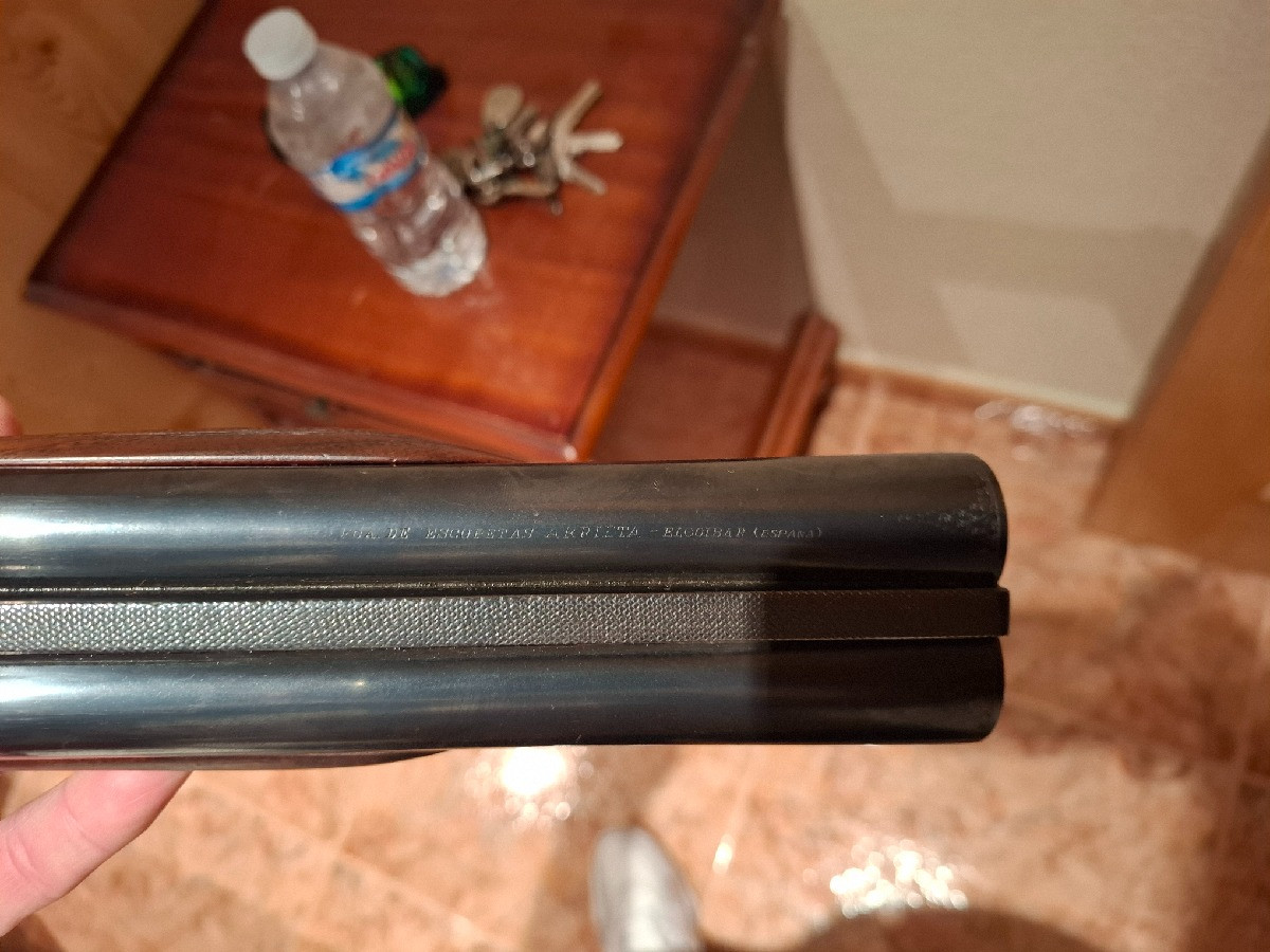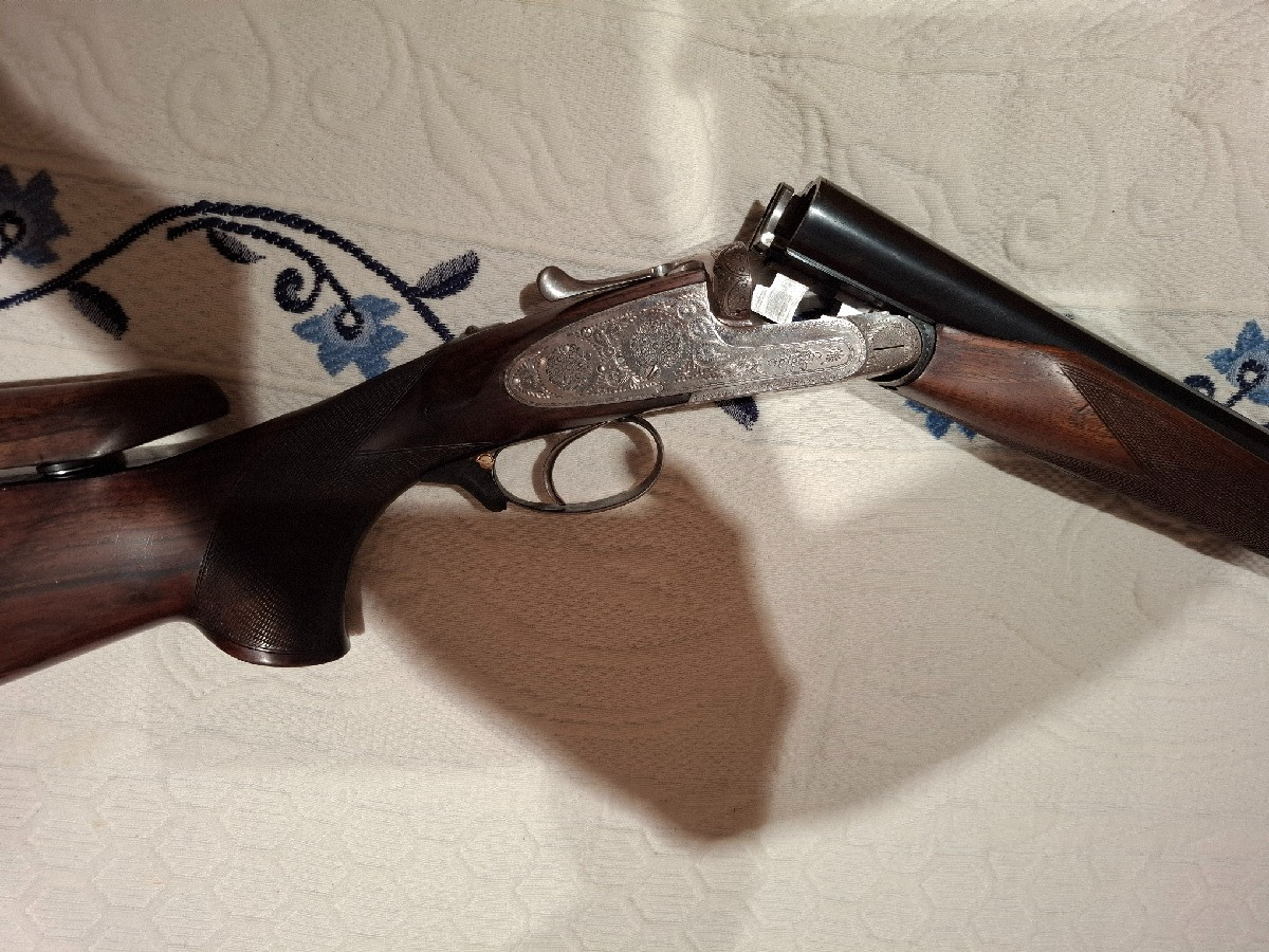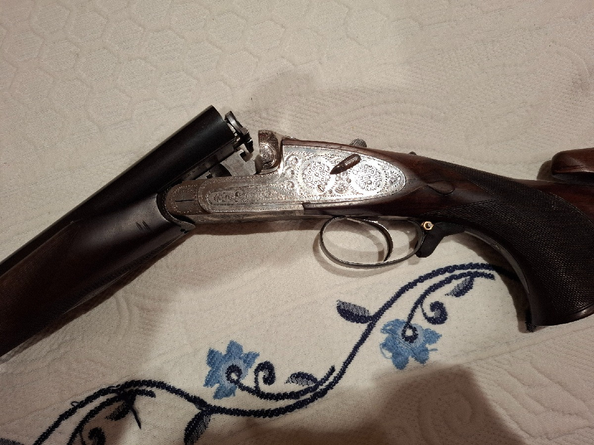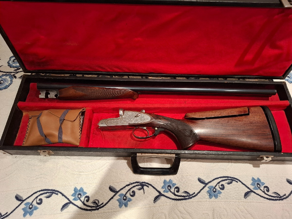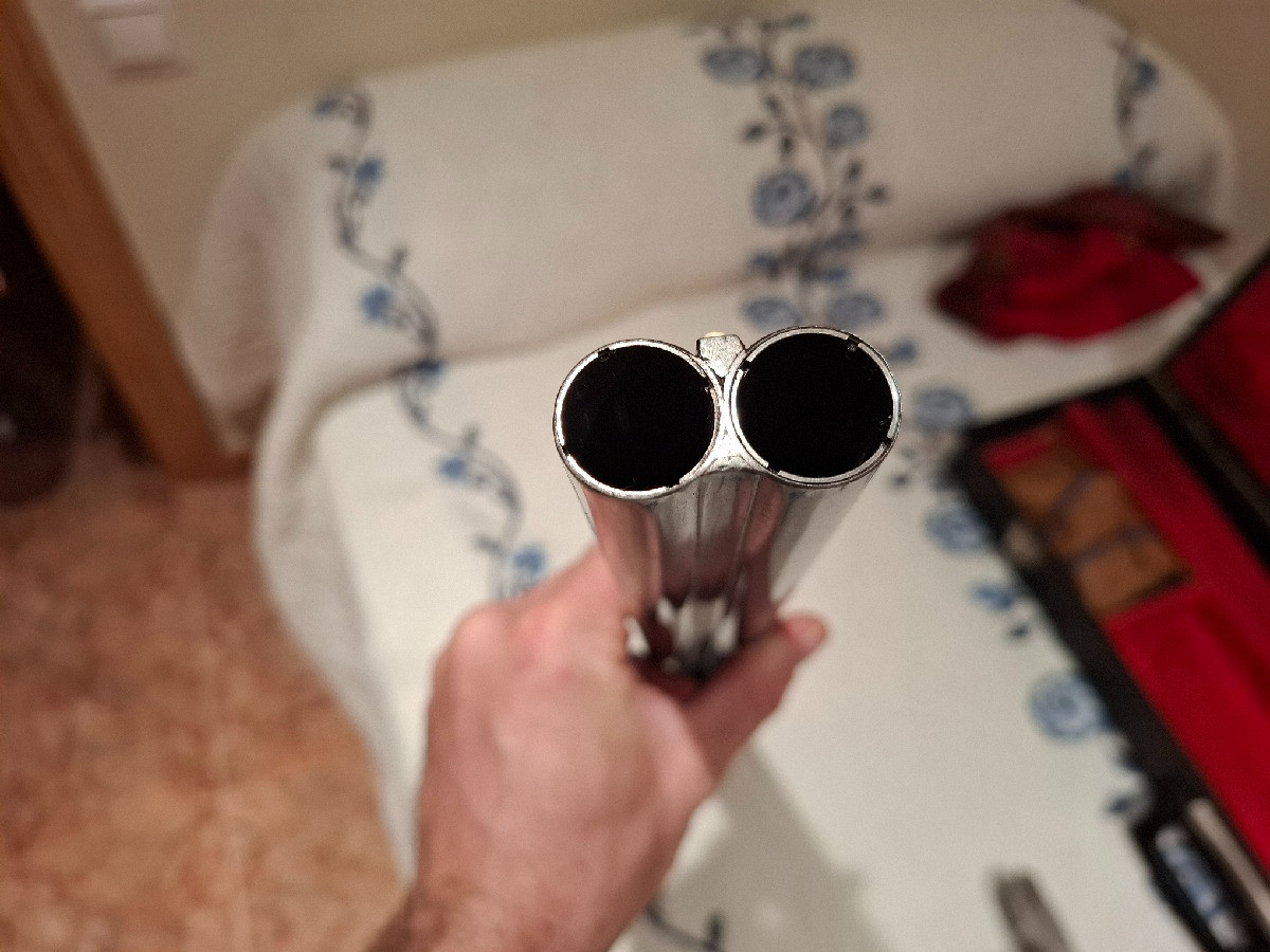 Escopeta en perfecto estado. Monogatillo, expulsora, con choques, una joya. Lomo regulable y cantonera regulable.