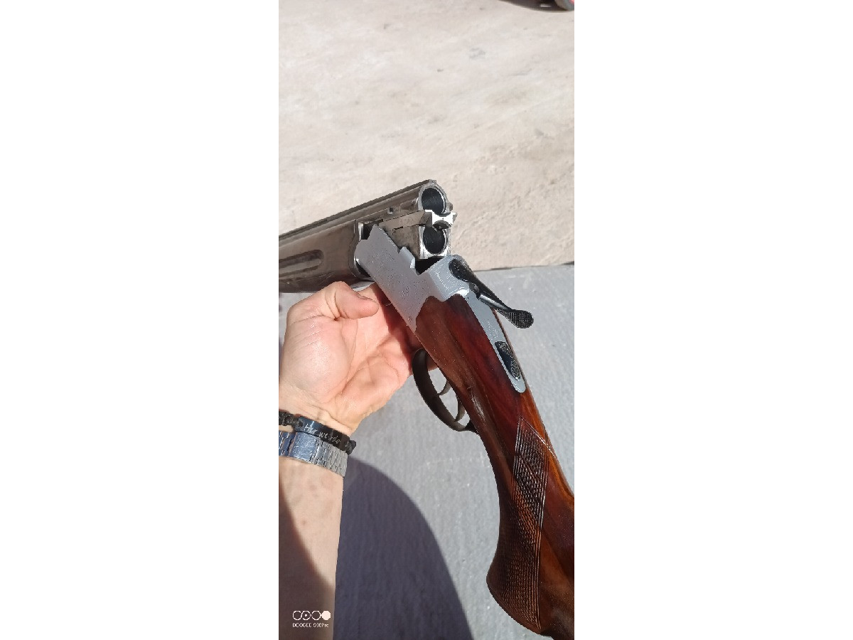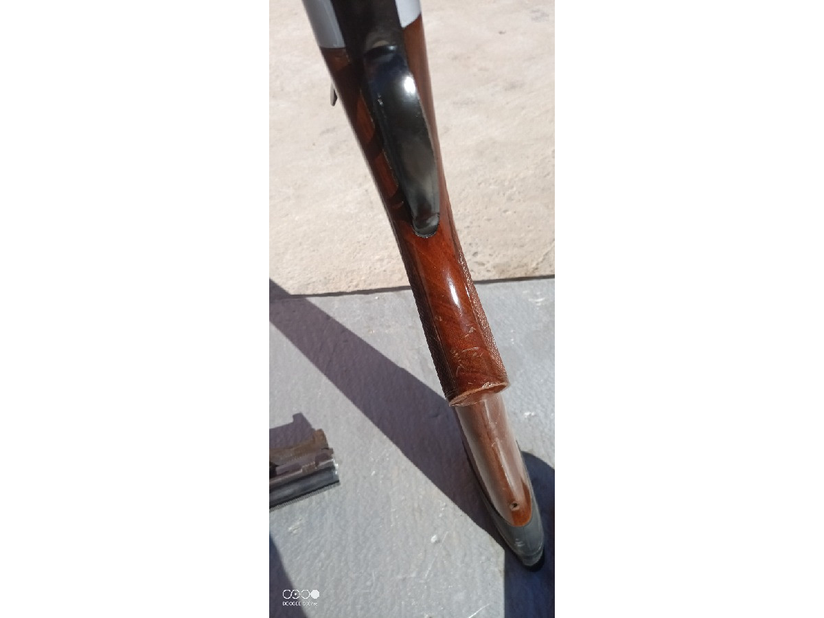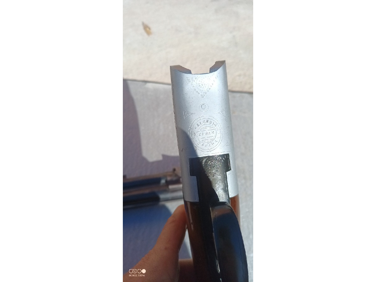 Escopeta superpuesta calibre .12 cañón 71 cm, 3 y 1 *, doble gatillo, expulsora. Perfecto estado de funcionamiento, alguna pequeña raya y mella en la madera. Se encuentra en Lérida.