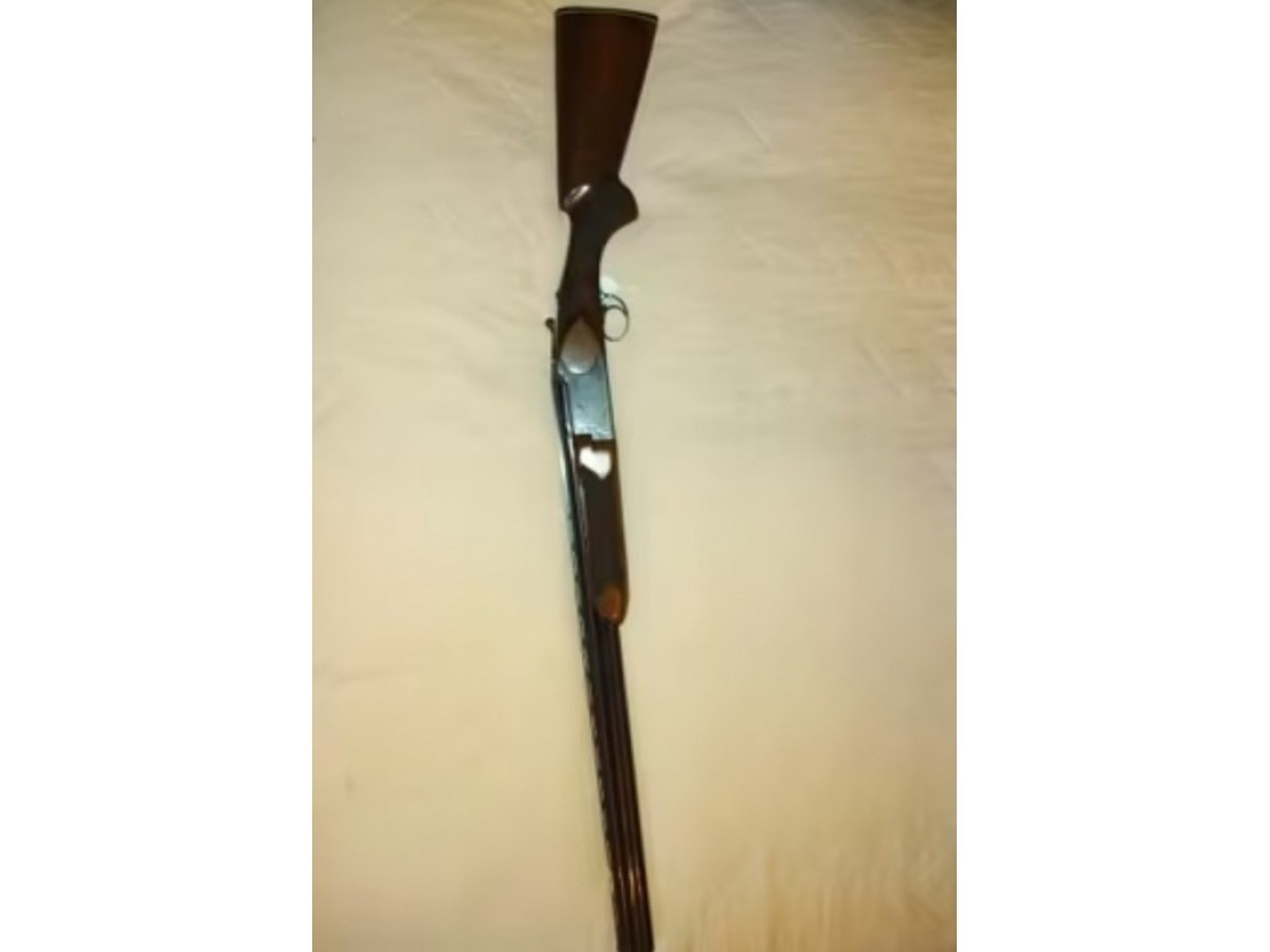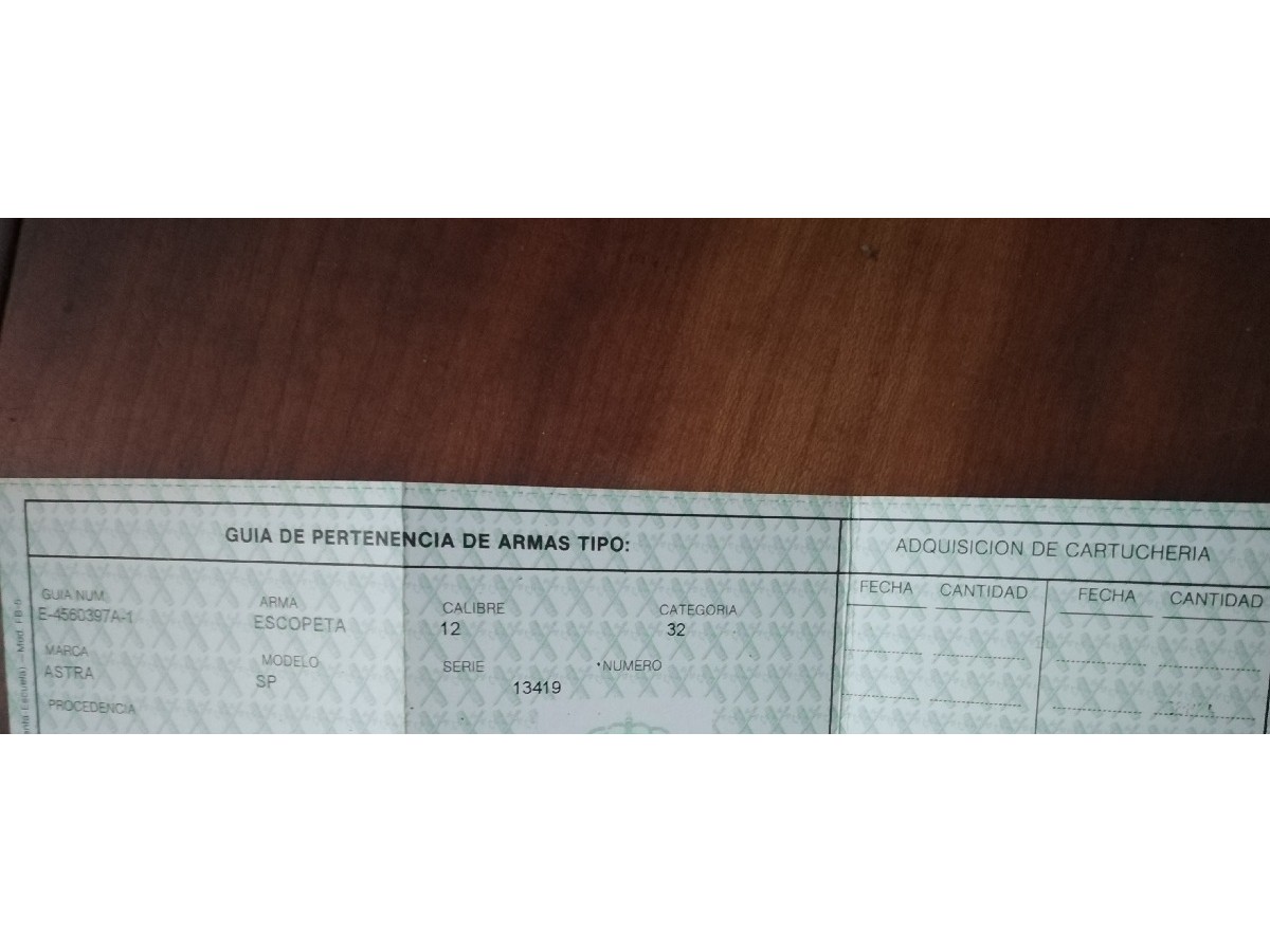 Escopeta Astra de dos cañones superpuesta con calibre 12, incorpora funda y lleva dibujos antiguos incrustados en el acero.