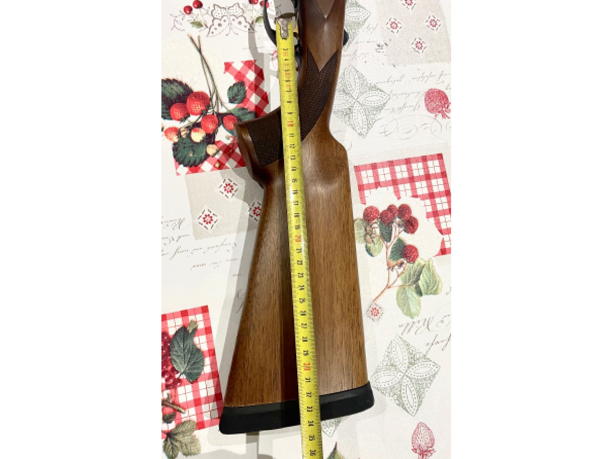 Escopeta superpuesta Ata sp black, cal 20 cañón brillo de 66cm. Solo a tirado una caja de cartuchos. culata cortada por armero ya que se me hacía larga. del gatillo al hombro son 34,5 cm.