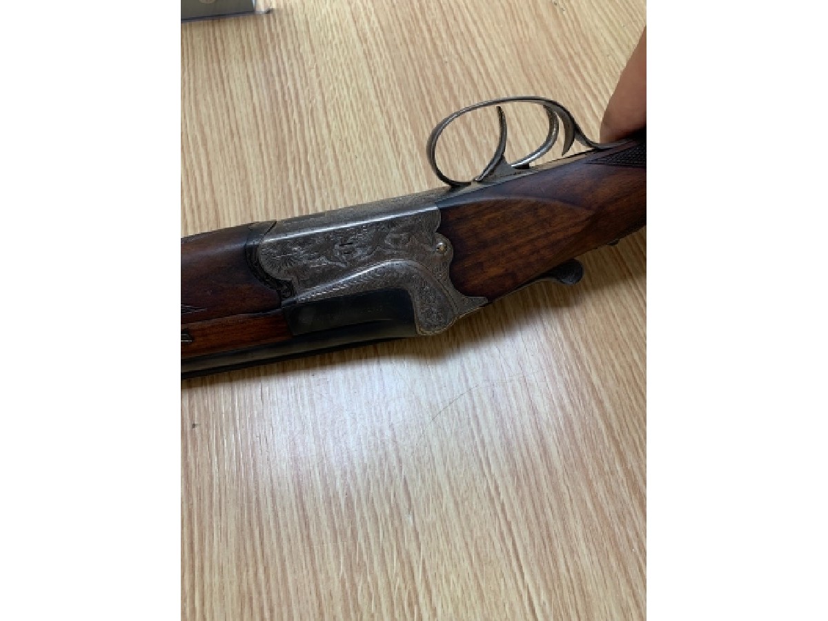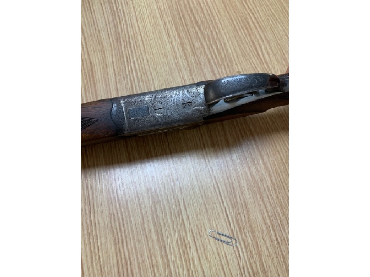Escopeta superpuesta AYA Coral Deluxe. En buen estado, expulsora, grabados finos, válvula salida de gases. Triple cierre.