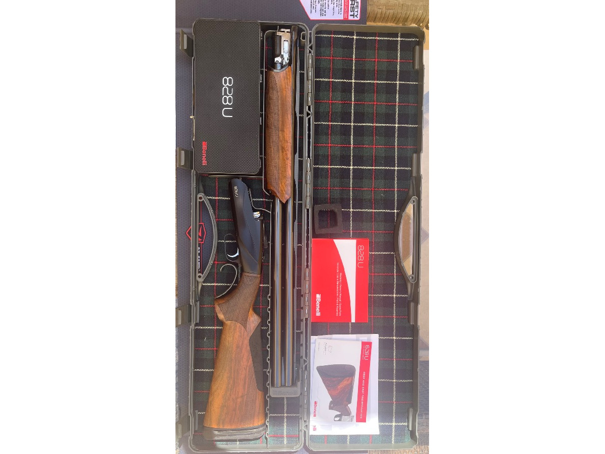 Vendo Benelli 828U Black calibre 12. Se vende Benelli 828U Black del año 2020, escopeta en excelente estado y con muy poco uso real. Se vende únicamente por falta de uso, ya que ha pasado mucho tiempo guardada. Arma muy cuidada, con maderas impecables y cañones perfectos, tanto exterior como interiormente. Cierre, mecanismos y conjunto general en estado sobresaliente. Escopeta moderna, ligera y muy equilibrada, ideal para quien busque una superpuesta de calidad con la fiabilidad de Benelli. Se entrega completa con su maletÃn original y accesorios de fábrica: choques, llaves y complementos originales. Detalle a tener en cuenta (máxima transparencia): Por el tiempo guardada, la goma de la cantonera y la carrillera presentan deterioro superficial tÃpico del material y convendrÃa sustituirlas. Es únicamente un tema estético/material, sin afectar al funcionamiento del arma. Una oportunidad de llevarse una Benelli 828U Black prácticamente nueva, con muy poco uso, completa y a mejor precio que una unidad recién comprada. Se puede ver sin compromiso.