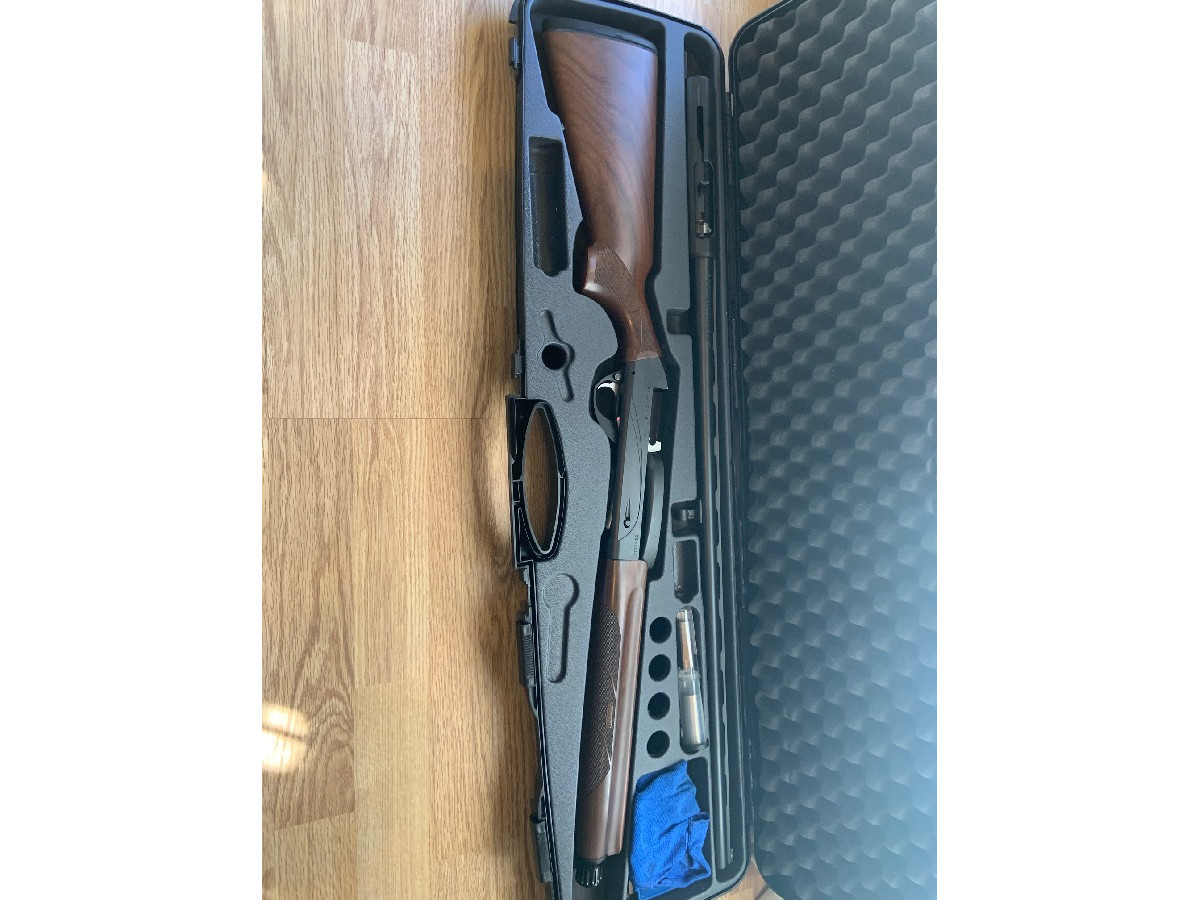 Benelli Belmonte 1 MK2, cañón de 71 cm, 3 mobilchokes de 2, 3 y 4 estrellas, maletín y 2 cantoneras. Los chokes y el maletín comprados después. Pocos tiros, prácticamente nueva a estrenar.