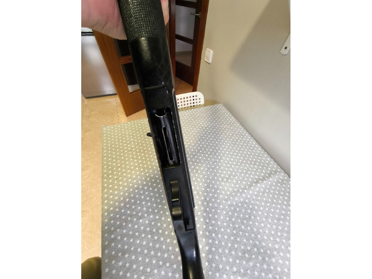 En Barcelona vendo escopeta repetidora Benelli Premium Superligera. Pintada de camuflaje técnico con rozaduras tenues de uso que le dan carácter al camuflaje, en perfecto estado mecánico y interior del cañón cilíndrico, con punto de mira en mitad de la banda y un polichoke extraíble de 4* recámara Magnum 3".