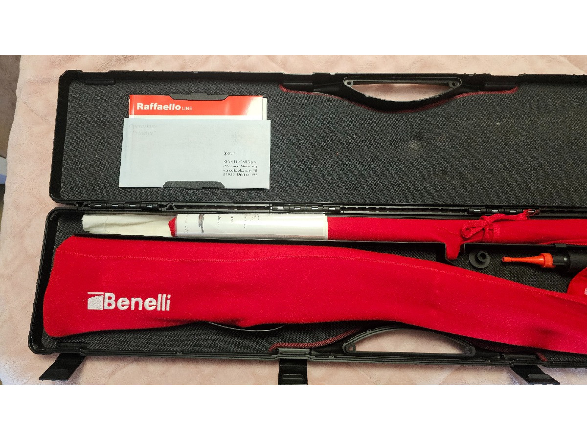 Benelli Raffaello 50 aniversario, edición limitada, solo 1000 unidades fabricadas, excelente estado, maletín, choques, accesorios, diploma, todo como nuevo y original, maderas culata y pasamanos en raíz de nogal grado 4 (escopeta exclusiva).