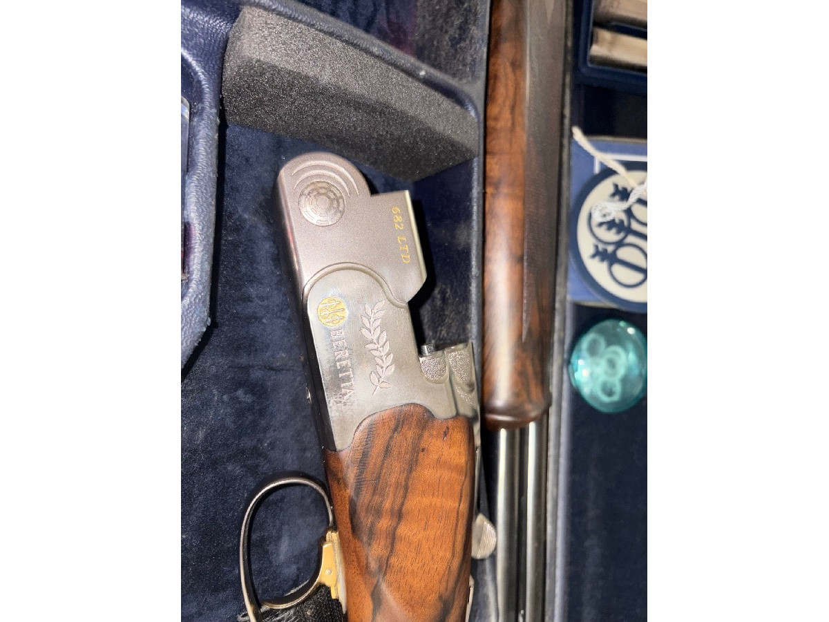 Vendo Beretta 682 edición limitada, la número 129 de 1500 con papeles Beretta, maderas de alto grado, 5 polichokes originales Beretta, dos cartuchos aliviamuelles, llave para cambiar la culata, maletín oficial de Beretta, selector de tiro, anillas para modificar el sube baja y 76 cm de cañón.