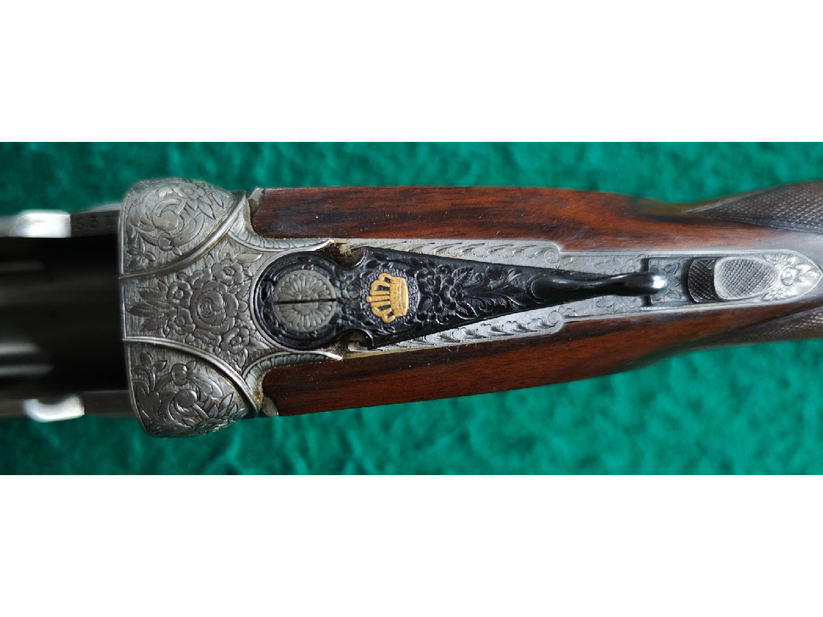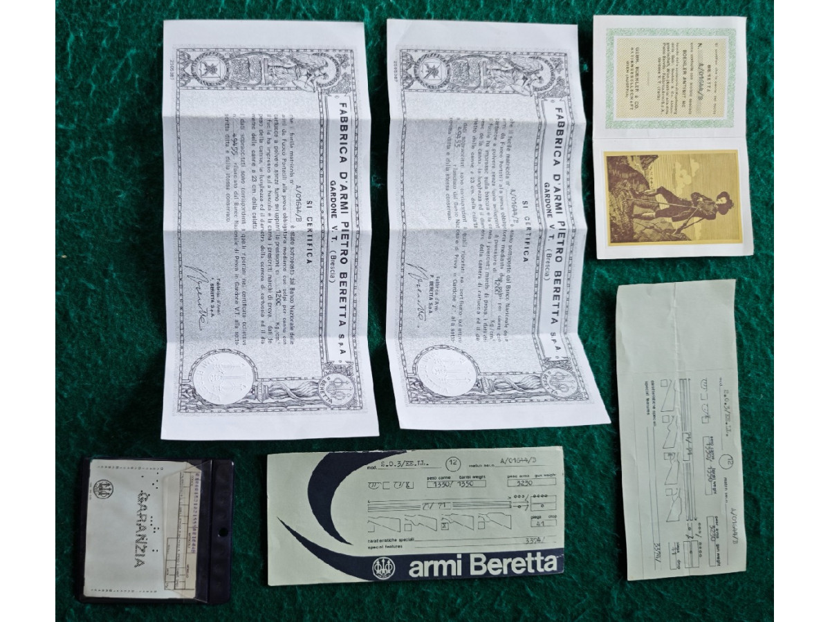 Preciosa escopeta Beretta superpuesta calibre 12 con 2 juegos de cañones, completamente grabada, madera nogal grado I, acero Boehler, certificados y garantía. Uno de los cañones con polichokes. Cantonera regulable. Muy cuidada, sin golpes y perfectamente ajustada.