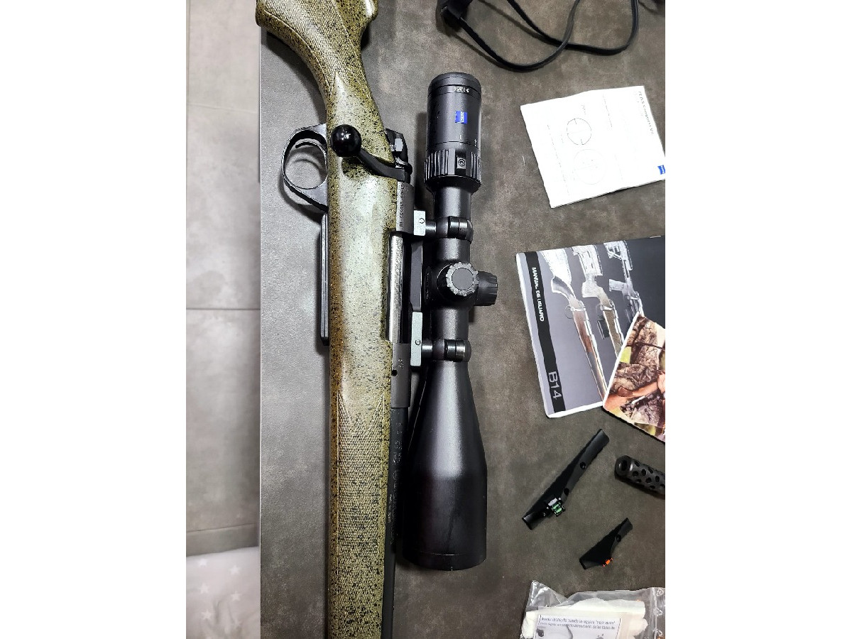 Bergara B14 Hunter 270 Win, con alza de batida y freno de boca, monturas Leupold desmontables y visor Zeiss Conquest V4 3-12x56 con retícula iluminada, anillas y correa portafusil. Se recoge en Madrid. 1300 €