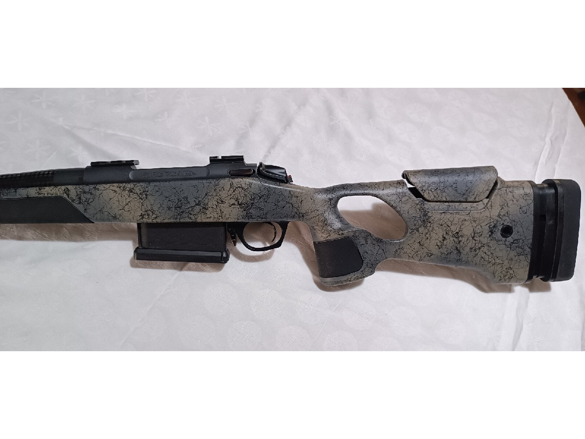 Rifle de cerrojo Bergara B14 Wilderness Thumbhole Carbon calibre 300 Win Mag. Estado impecable, solo se ha disparado para ponerlo a tiro (5-6 balas). Cargador de 5 balas. Cañón de carbono, lo que reduce el peso considerablemente y con freno de boca para reducir el retroceso. Se vende con monturas y anillas de 30 mm.