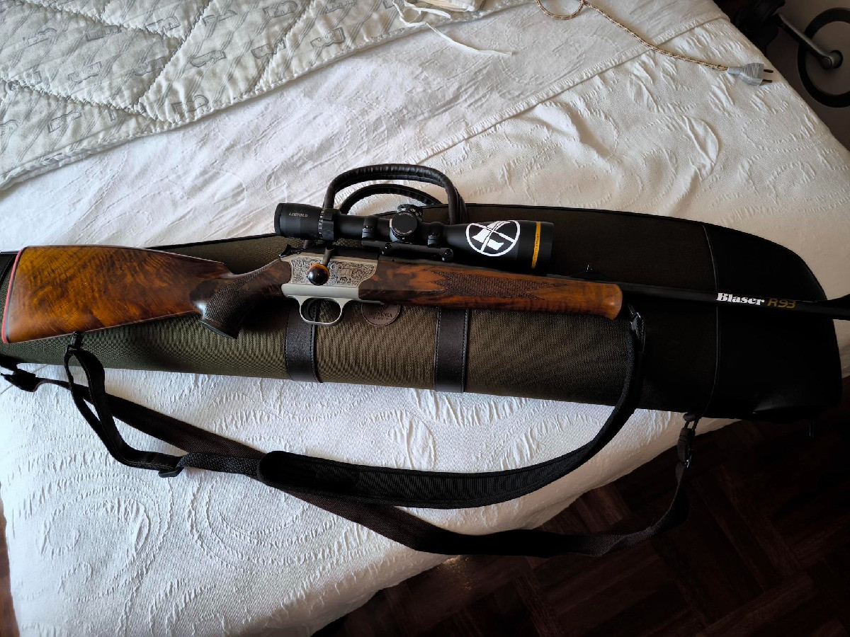 Rifle de cerrojo Blaser r93 luxus, calibre 30/06, maderas grado 6 recién hechas al aceite, cantonera holland & holland, visor leupold vx6 hd 3,18x50 y monturas blaser originales y correa original blaser, el visor y las monturas son nuevos a estrenar no ha salido al campo solo centrado, el rifle no ha tirado mas de 2 cajas de balas, agrupaciones a 100 metros 3 tiros en una moneda de 20 céntimos demostrable.