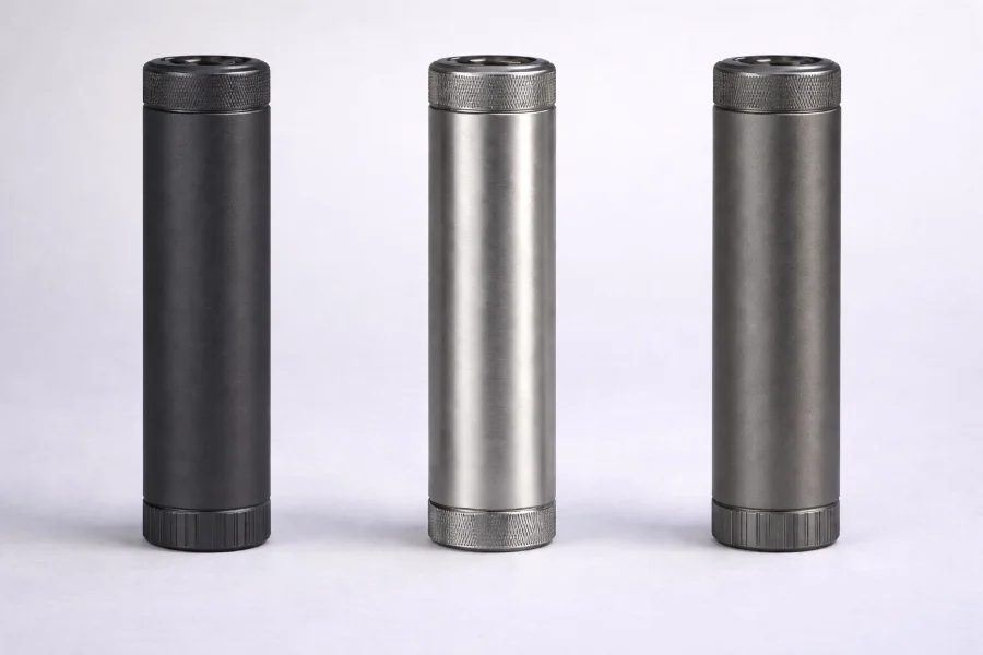 - Titanio: combina ligereza y alta resistencia, posicionándose como una de las opciones más avanzadas del mercado. Soporta presiones elevadas y altas temperaturas sin comprometer el peso del conjunto, lo que lo hace ideal para rifles potentes donde se busca máximo rendimiento con el menor incremento de masa posible. Su principal inconveniente es el coste, considerablemente superior al aluminio o al acero inoxidable.