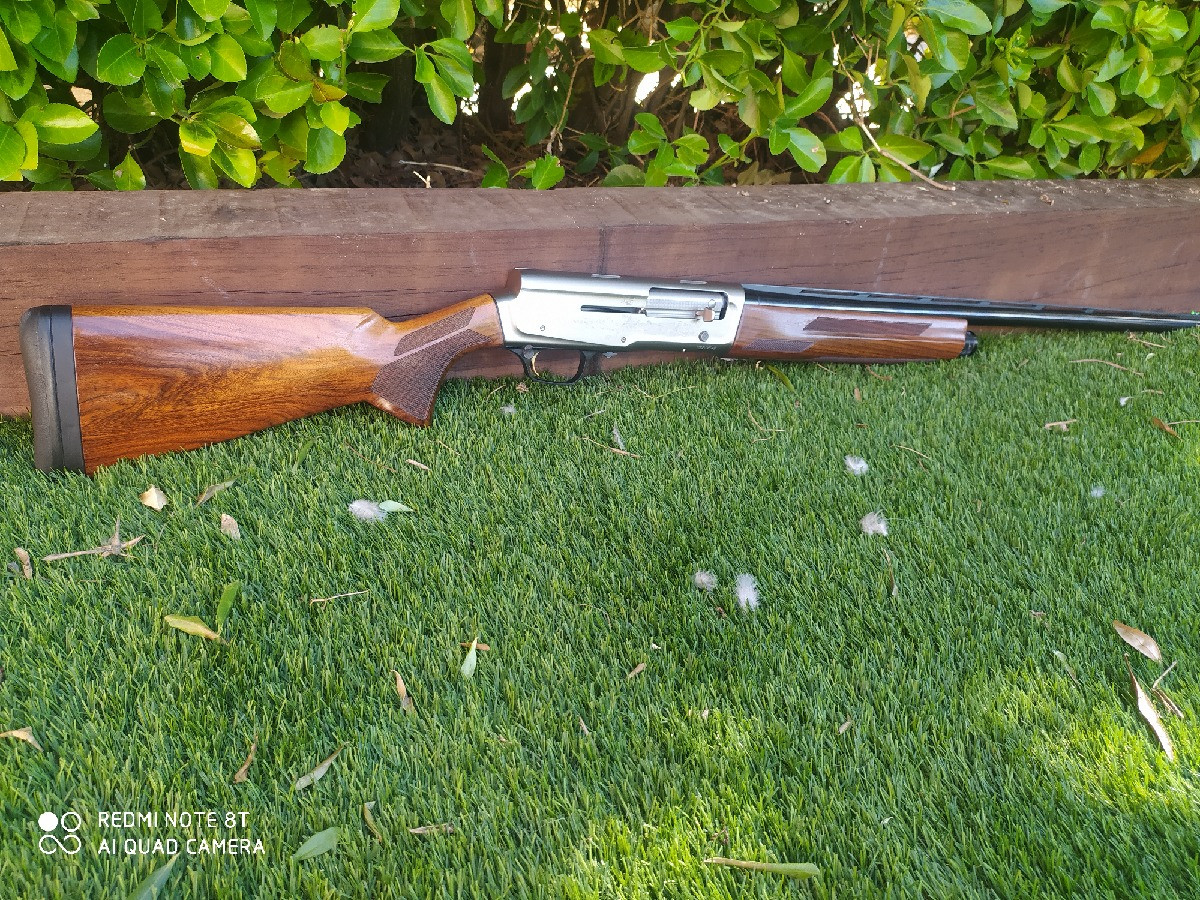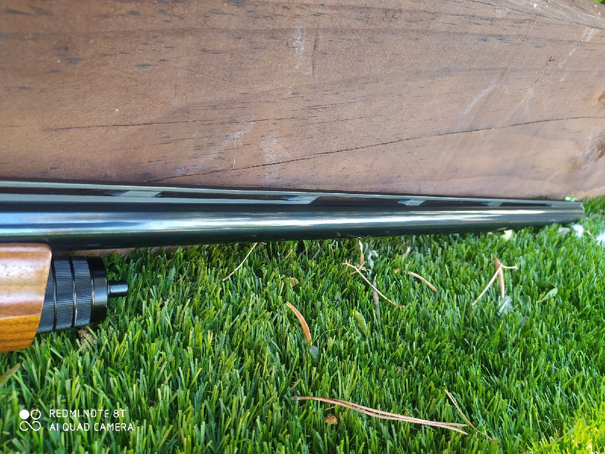 Browning A5 tope de gama del modelo. Calibre 12/76. Cañón de 71 cm. Sistema inercial. Maletín original con documentación, cuñas de regulación de la caída y ventaja así como de la longitud de la culata, candado y tres chokes Invector Ds (**/***/****). Impoluta a nivel estético y mecánico.