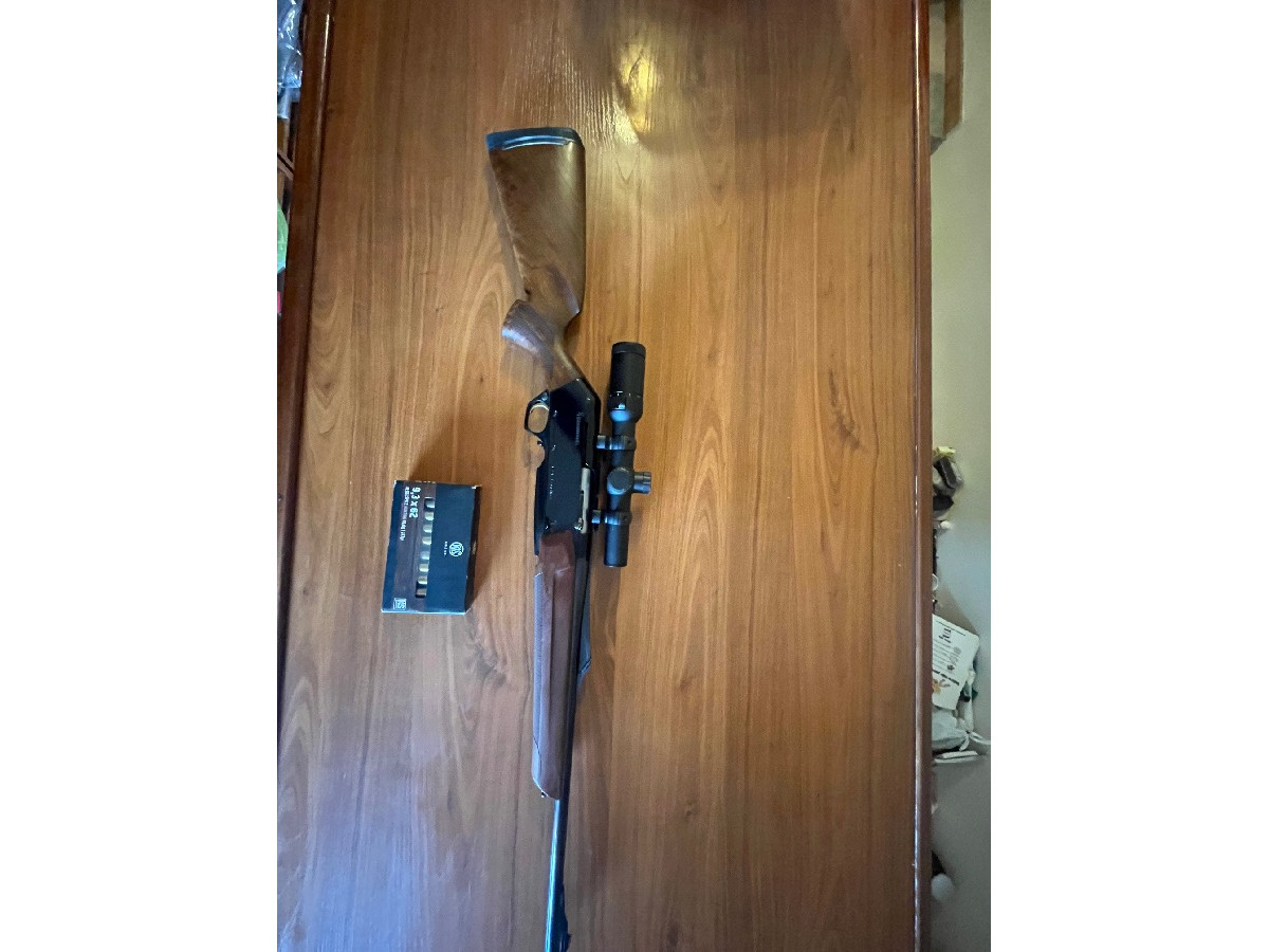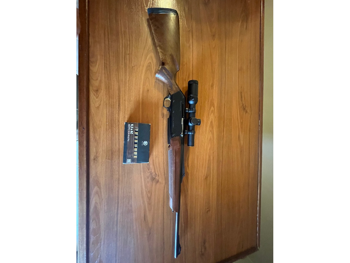 Rifle semiautomático Browning Long track con monturas desmontables, anillas y visor de batida 1-6x24 marca dall’s sheep. En calibre 9’3 x 62.