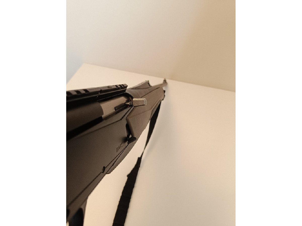 Muy cuidado y poco uso. Gran poder de parada. Cargador 2+1. Alzas de tiro. Carril picatinny. Pequeña raya en culata. Extras: correa con enganche al rifle de anclaje rápido, anillas fijas para tubo de 40, carrillera regulable, maletÃn de transporte duro y acolchado. Precio del rifle. Extras aparte.