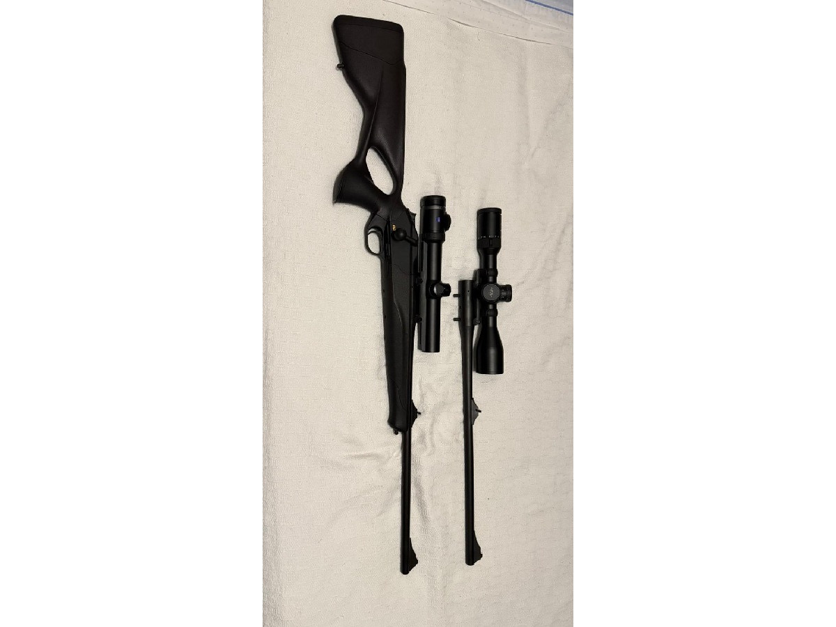 Cañón y cargador en perfecto estado del rifle Blaser calibre 9.3 x 62. Está nuevo, no ha disparado ni media caja de balas.