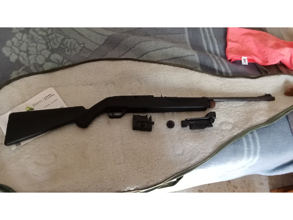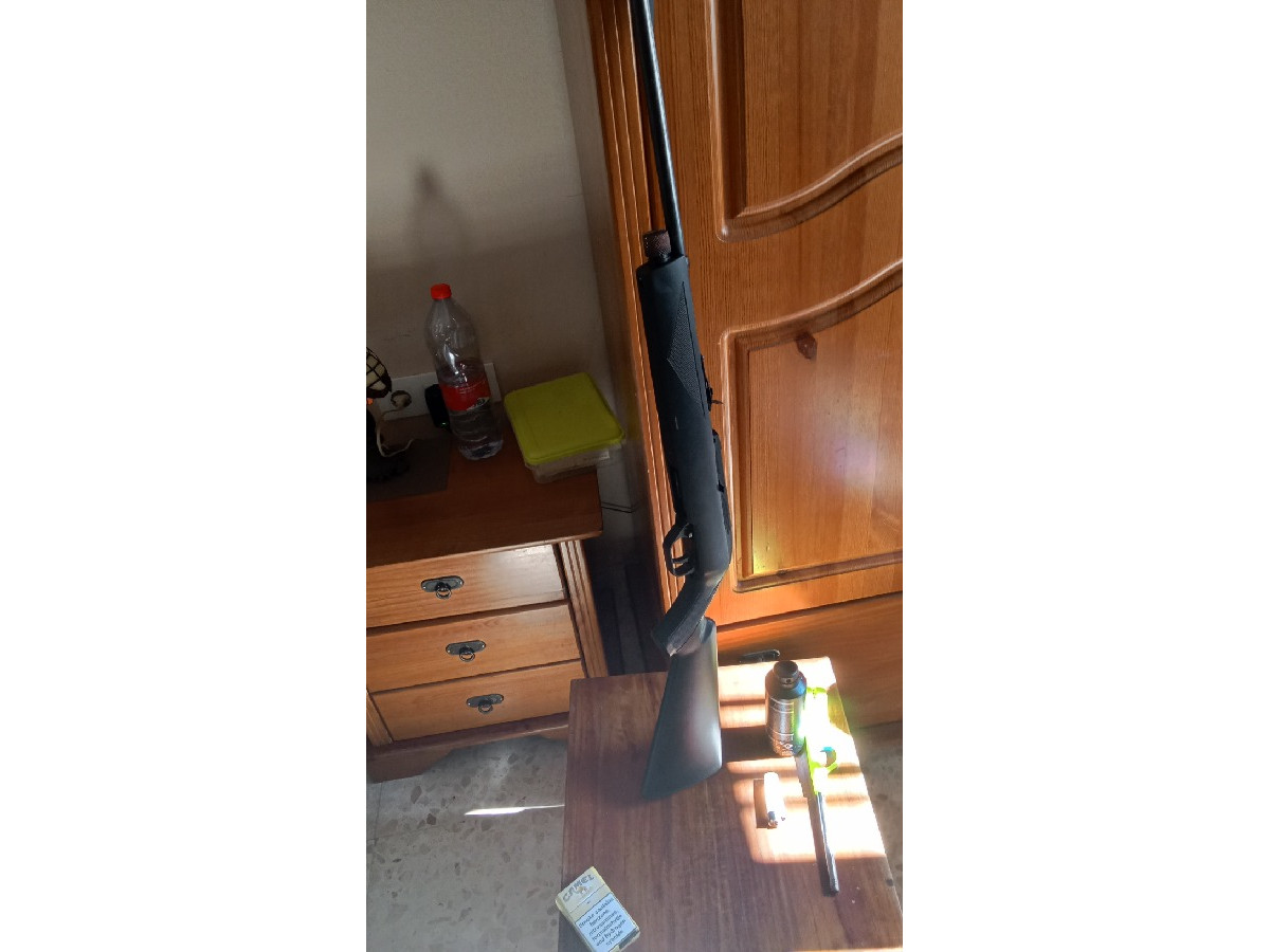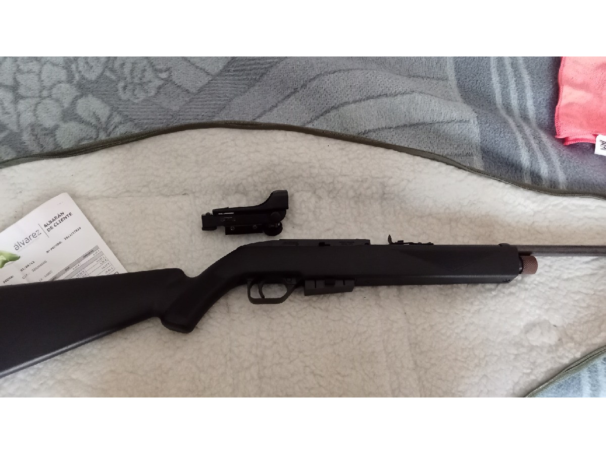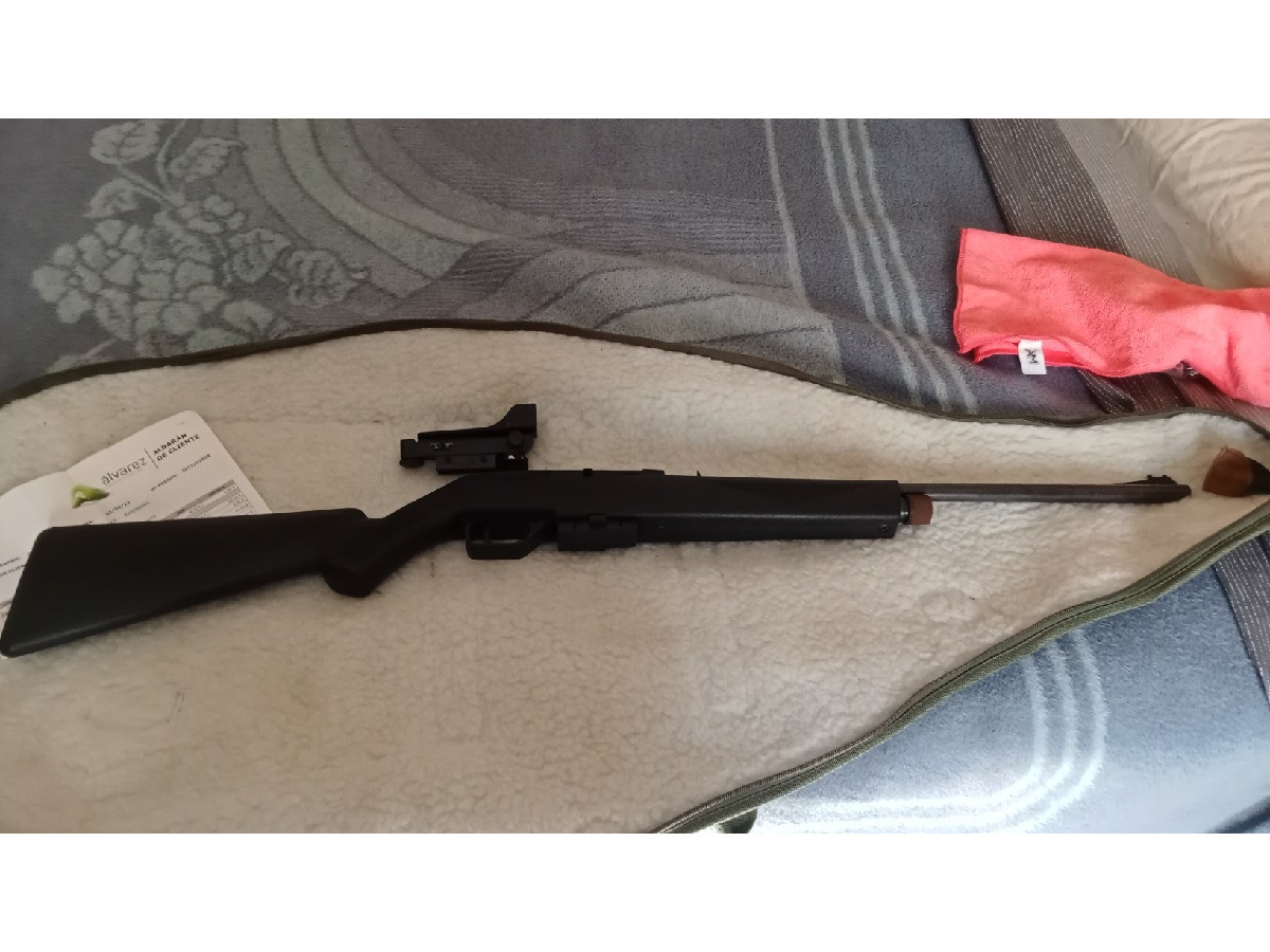 Carabina fabricada en USA, con botellas de CO2 y cargador rotativo de 12 disparos. Está casi sin usar, lleva guardada muchos años (tiene algunos micropuntos de oxidación poco visibles). También se incluye visor Red Point.
