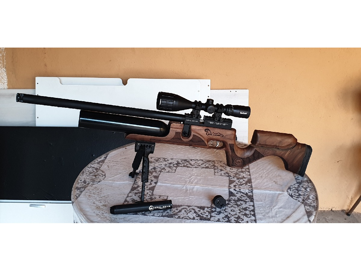 Carabina pcp kral big horn calibre 7.62, se entrega con visor bushnell 6-18 ×50,moderador de sonido kral, sonda de carga kral, 1 cargador, bipode y maletín rígido acolchado la carabina esta como nueva, poco uso