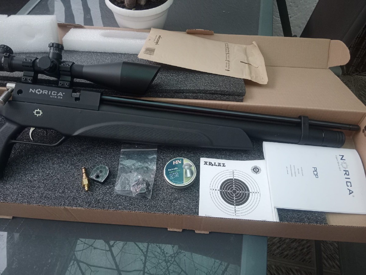 Se vende carabina PCP Norica NTX 35 con válvula reguladora y con visor 6-24x60. No ha tirado ni una caja de balines. Comprada el 26/11/2025, está igual que nueva. Tiene cargador monotiro y multitiro. Viene tal cual se ve en las fotos. Solo gente interesada. Precio 430€. Envío a cargo del comprador.