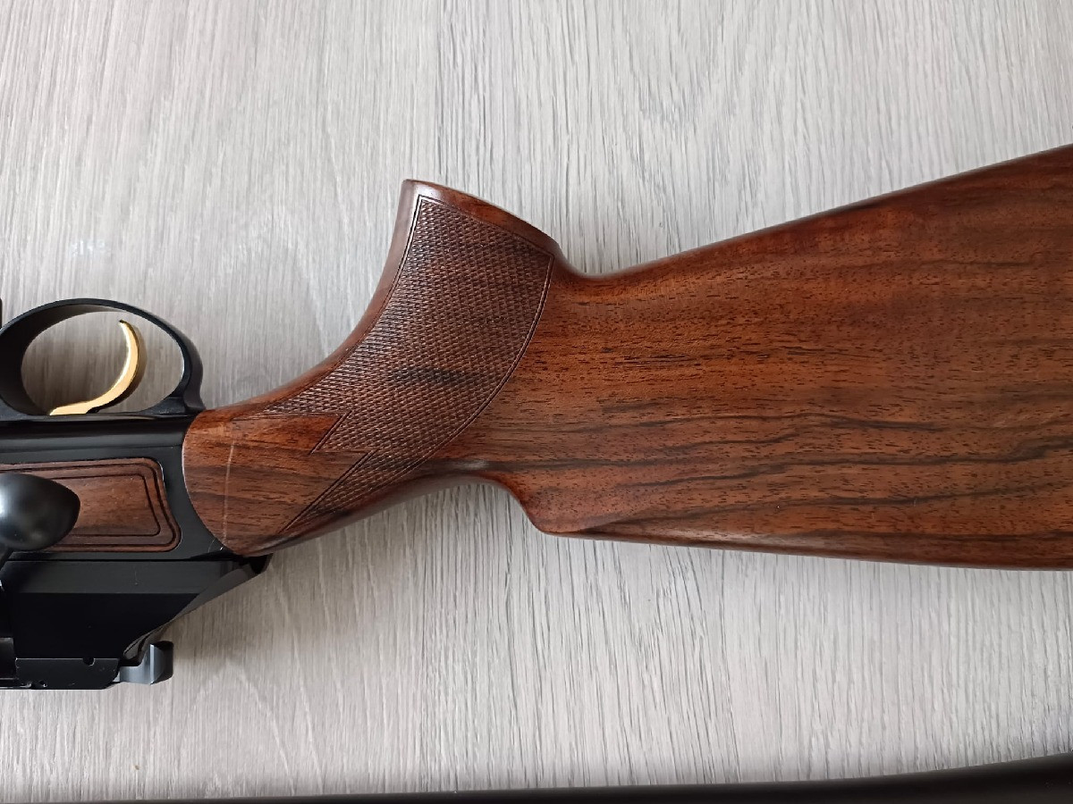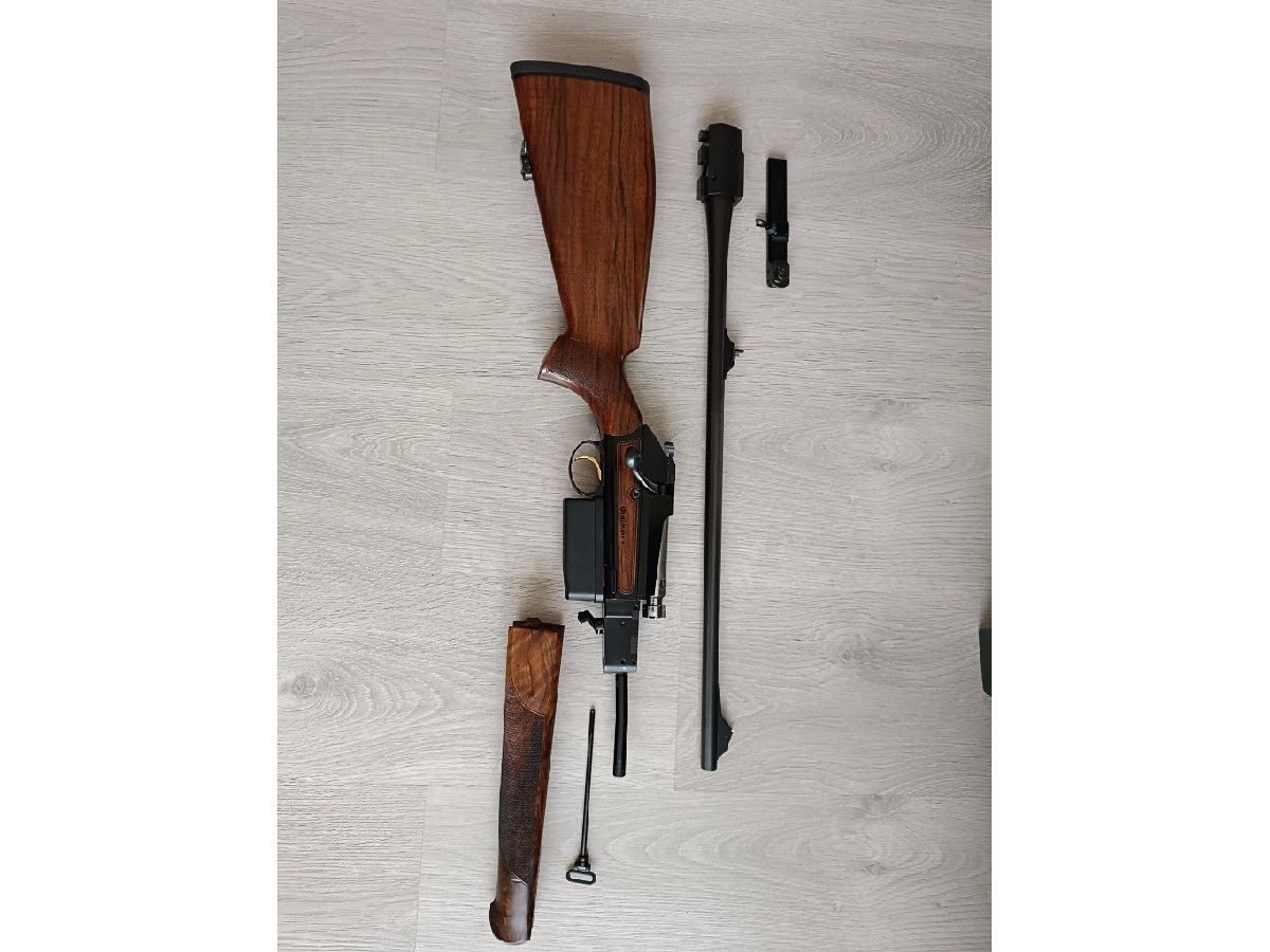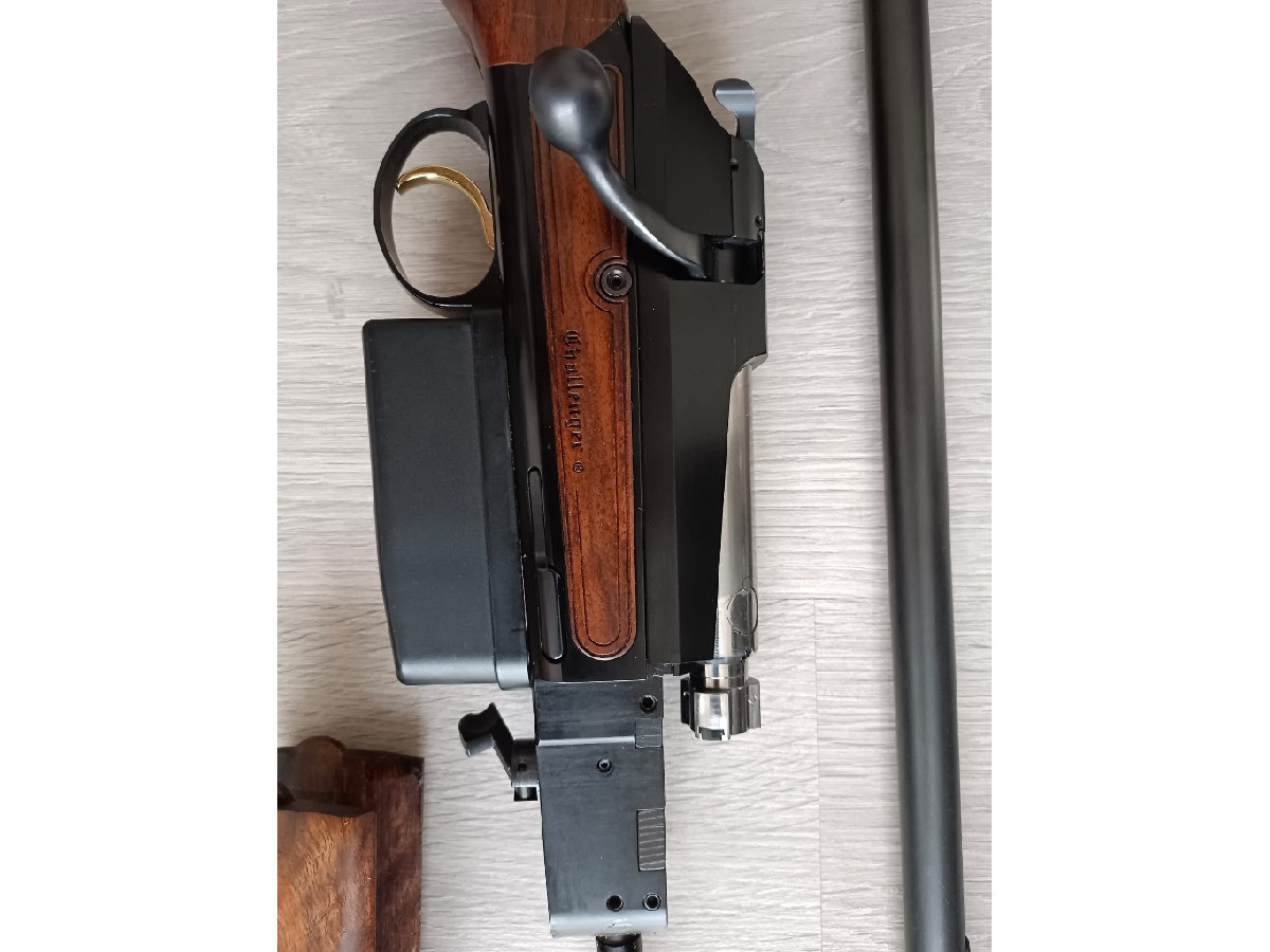 Chapuis modelo Challenger 300 WM. Cerrojo lineal suave y robusto con acerrojamiento a 60 grados y 3 tetones. Maderas de nogal europeo muy bonitas. Tapas laterales de madera. Desmontaje de cañón rápido con la posibilidad de intercambiar cañón de otro calibre. Alza con fibra óptica y punto de mira blanco. Monturas para visor originales. Cargador extraíble. Gatillo directo y pelo. Se vende por no usar.