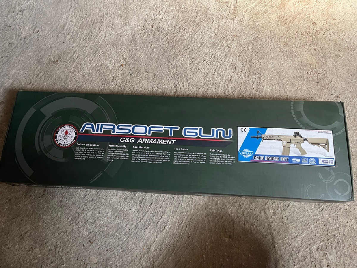 Fusil Airsoft CM16 de G&G con 3 partidas de uso, en perfecto estado está como nueva, la vendo por no usarla, tiene su caja original.