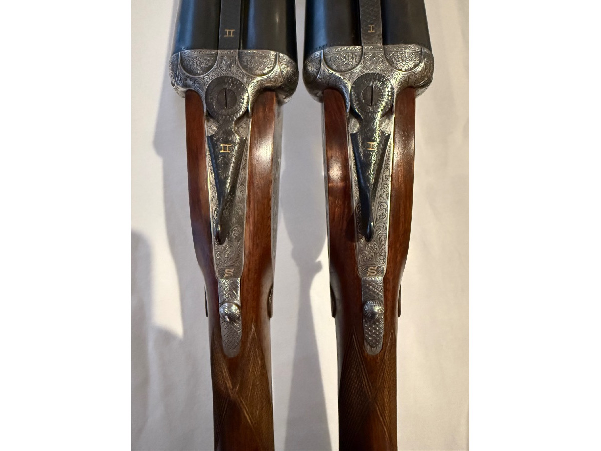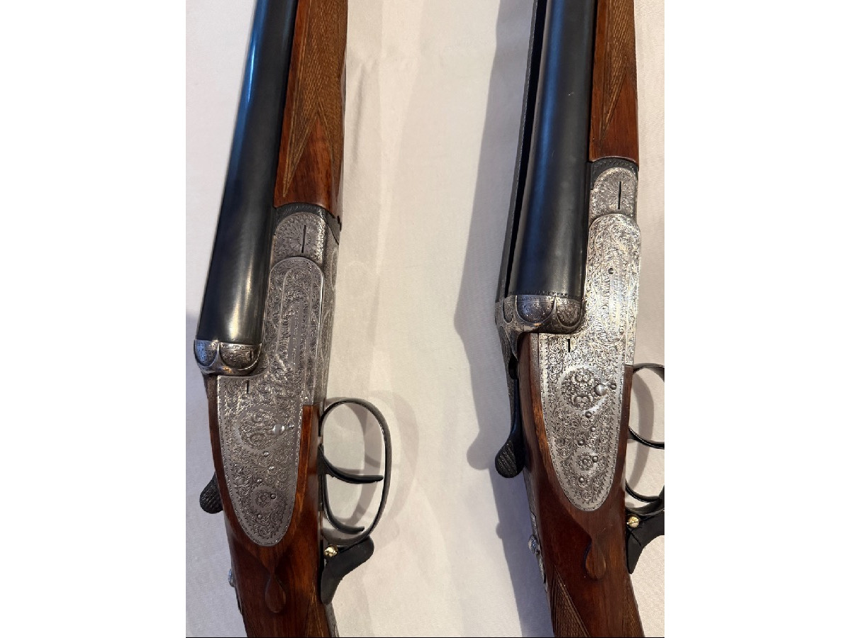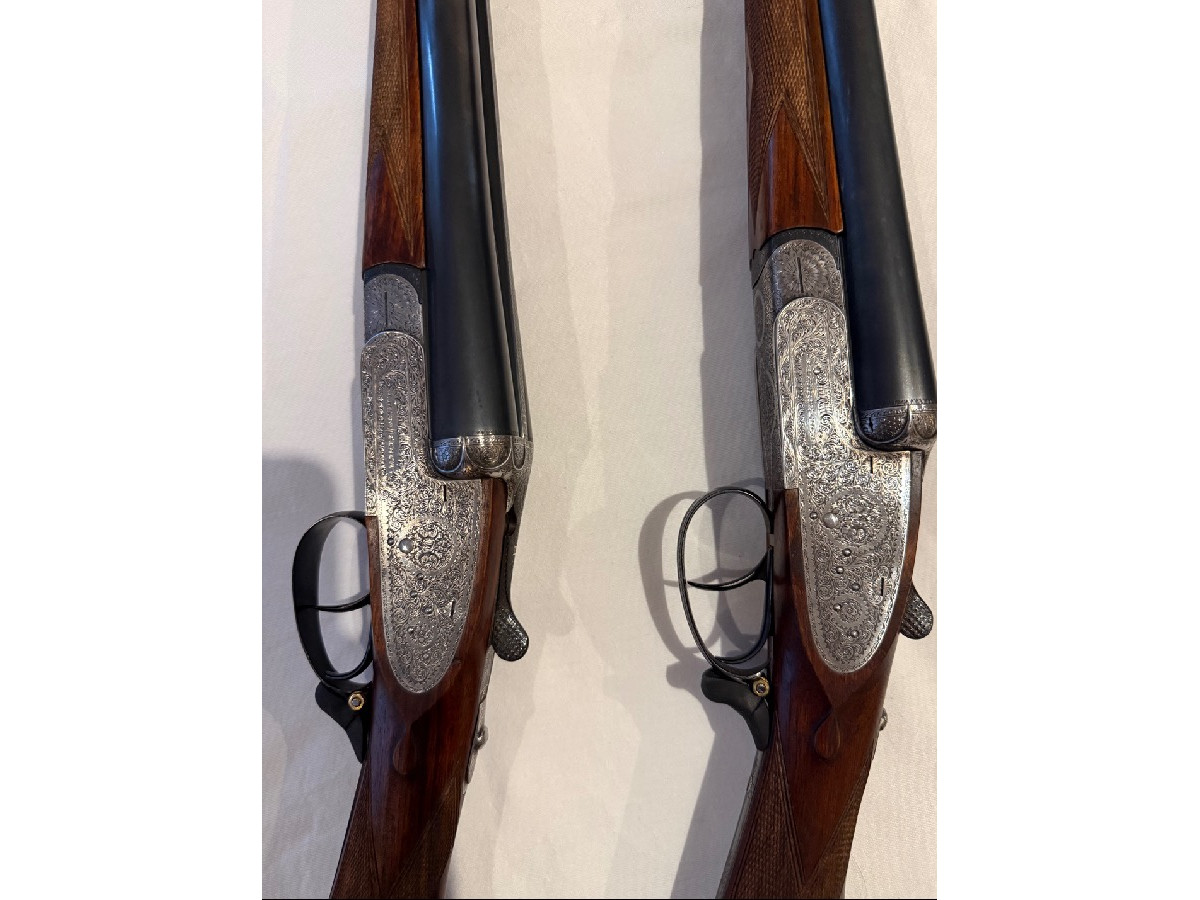 Pareja de escopetas paralelas Ignacio Ugartechea – pletina larga (sidelock) con expulsores automáticos. Se trata de una auténtica pareja (I y II) con numeración correlativa (104592 y 104593), en muy buen estado de conservación. Escopetas de gama alta dentro de Ugartechea, con grabados finos tipo inglés y maderas bien conservadas. Incluyen segundo juego de cañones para tiro de pichón, lo que las convierte en un conjunto especialmente interesante tanto para uso como para colección. Funcionamiento perfecto, buen ajuste y cañones en buen estado. DifÃcil encontrar una pareja de estas caracterÃsticas con doble juego de cañones. Precio: 14.000 € (negociables). Se pueden ver sin compromiso. Transferencia por Intervención de Armas de la Guardia Civil.