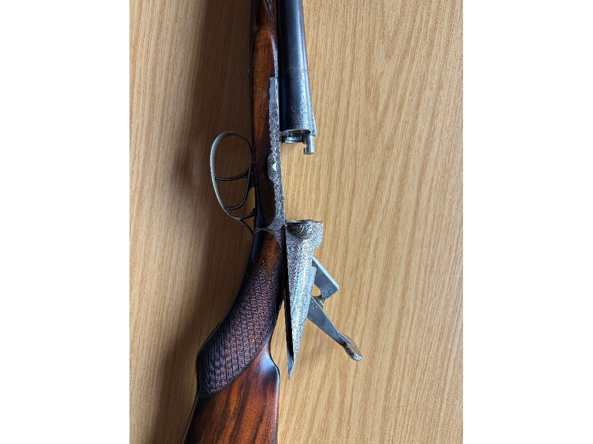 Vendo escopeta yuxtapuesta/paralela, marca Darne, calibre 16/65. Modelo V20 (10 coronas), que es uno de los modelos de alta gama de la marca. La escopeta es una muestra de la más alta artesanía y calidad francesa de los años 20/30. Sistema de carga de carro deslizante, no abatible. La escopeta está grabada finamente en todos sus metales, especialmente en báscula, gatillos, y recámaras. Es para verla en directo, simplemente impresionante. Es una escopeta para varias vidas, de la más alta calidad y finísima. Se puede disparar sin ningún problema, es perfectamente servible. Pesa menos de 2,5 kg, presenta banda "pico de becada", ideal para tiros al vuelo, y punto de mira especial. Puntal de ébano y maderas super cuidadas. Picados a mano, perfectos y bien marcados. La escopeta está impoluta, tanto en ajustes y funcionamiento, como en estética. Es un arma muy poco conocida en nuestro país, pero altamente valorada y buscada fuera del mismo, principalmente en Francia. Hoy en día, por toda la artesanía que fue necesaria en su construcción, sería simplemente impagable. Horas y horas de grabados y ajustes a mano. Coscorros bien marcados y profusamente labrados. Es una escopeta que no deja a nadie indiferente, tanto por su peculiar y seguro mecanismo, como por belleza y desempeño, tiene unos plomeos impecables. Sobre el calibre... ¡qué puedo decir!, quién prueba un calibre 16 en una buena escopeta, no vuelve al calibre 12. Es ideal para toda nuestra fauna, siendo posible abatir lo mismo, y en las mismas circunstancias, con uno que con otro, solo que con 700 gr menos de arma, un retroceso muchísimo más contenido por su balance entre cargas, pólvora y peso del arma, y una estética, en este caso, fuera de lo común, además de una nostalgia creciente por el injusto menosprecio del calibre. Es un arma para pasear con ella. Es una belleza de escopeta, que tengo que quitarme por exceso de armas. El cupo no me permite tener más, y esta es la última que llegó a casa, que, sin historia familiar detrás que la avale como al resto de las que tengo y alguna otra que está por llegar, debe ser la primera en salir, con gran pena.