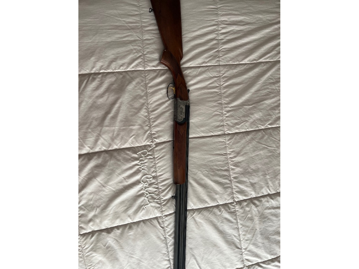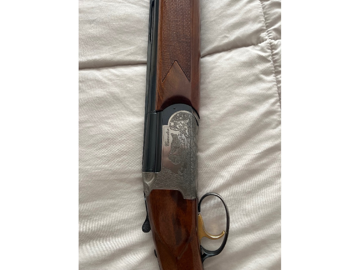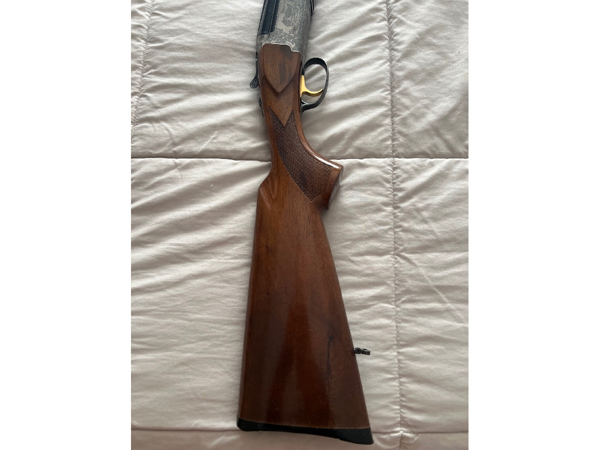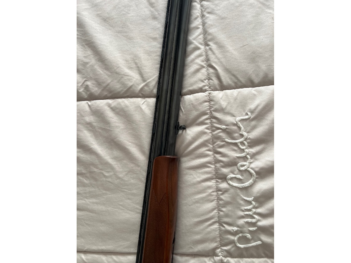 Escopeta marca Bettinsoli modelo Cazador calibre 12. Selector de tiro, 5 polichoques, expulsor. En muy buen estado.