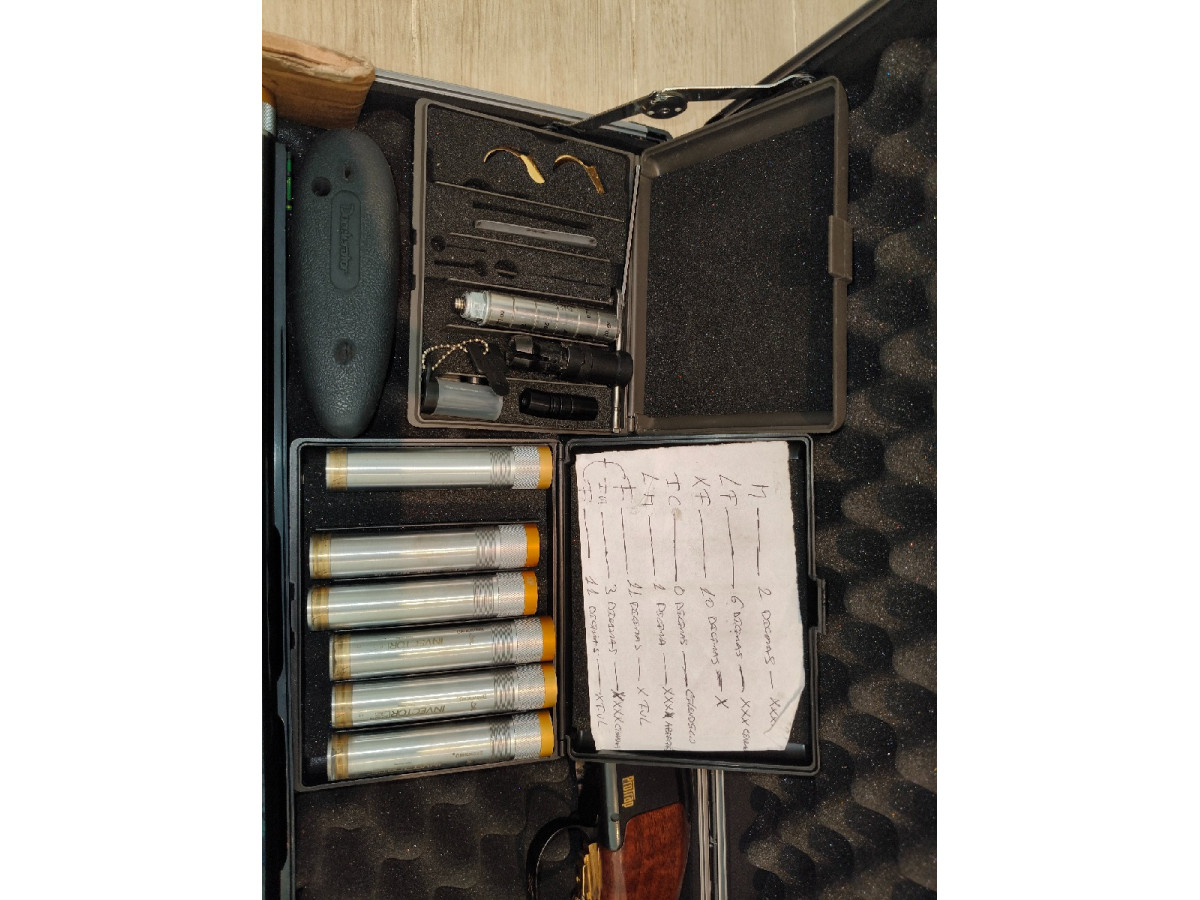 Vendo escopeta Browning 725 en perfecto estado. Vendo por no usar. Preciosa escopeta superpuesta de 75 cm de cañón. Culata regulable. Maderas en perfecto estado, muy bonitas. Cañón y báscula de acero negro en perfecto estado. Selector de tiro. Colección de 10 polichoques. Contrapesos de culata y cañón. Gatillos de repuesto. Maletín de transporte tal como foto.
