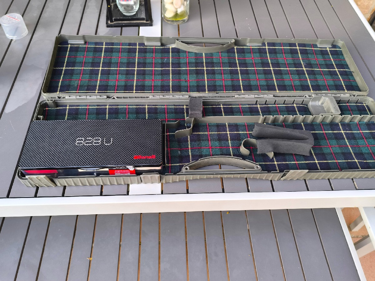 Escopeta superpuesta Benelli 828U de caza. MaletÃn original, choques interiores, sistema de cuñas todo original en perfecto estado.