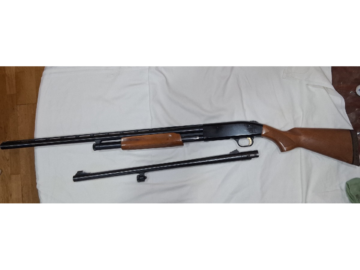 Mossberg 500 Hunting Combo calibre 12, escopeta corredera con dos cañones intercambiables que permite utilizarla para caza menor y caza mayor. Trae un cañón de 61 cm estriado con alza y punto de mira ajustable. El segundo de 71 cm con tres polichokes. Capacidad 5+1. Prácticamente sin uso, como nueva. Se incluye funda.