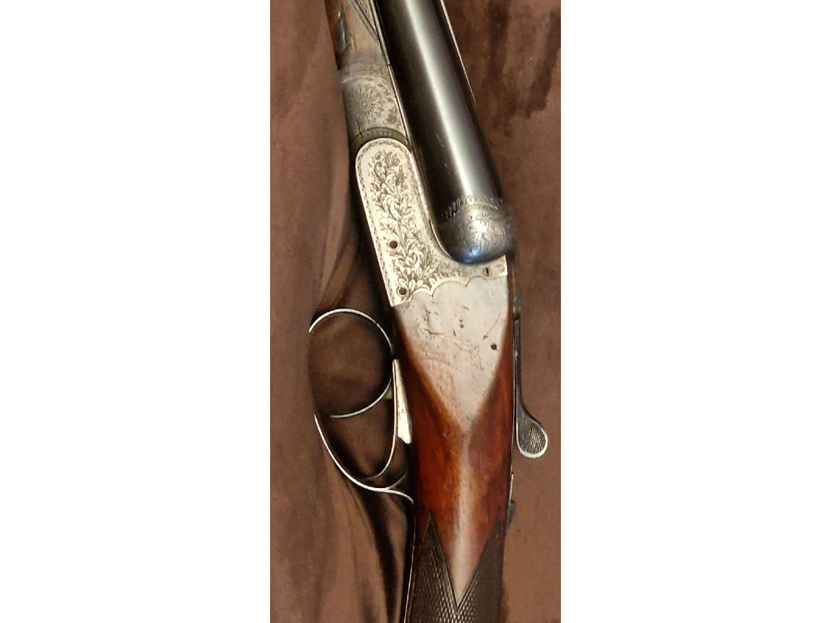 Escopeta paralela de caza para coleccionistas. Escopeta belga Lebeau Courally, lleva grabado: Lebeau Courally a Liège Fabriqué des Cours Impériale de Russie & d'Allemagne. Expulsores automáticos. Media platina. En perfecto uso y con todos los permisos actualizados.