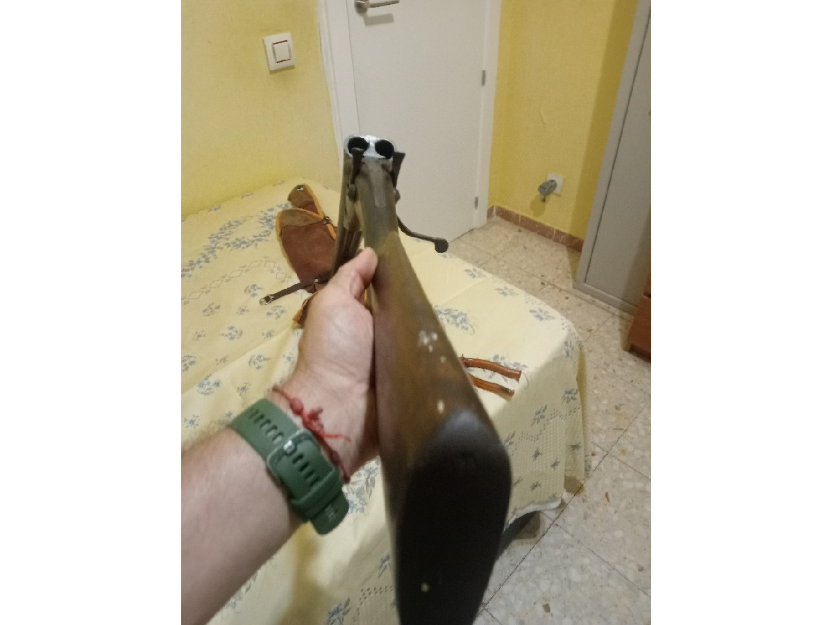 Escopeta de perrillos ideal para decoración, con documentación en regla. Muy antigua, guardamanos con cuña, cierre debajo del gatillo, cantonera original de chapa. También cambio por repetidora, pago la diferencia.