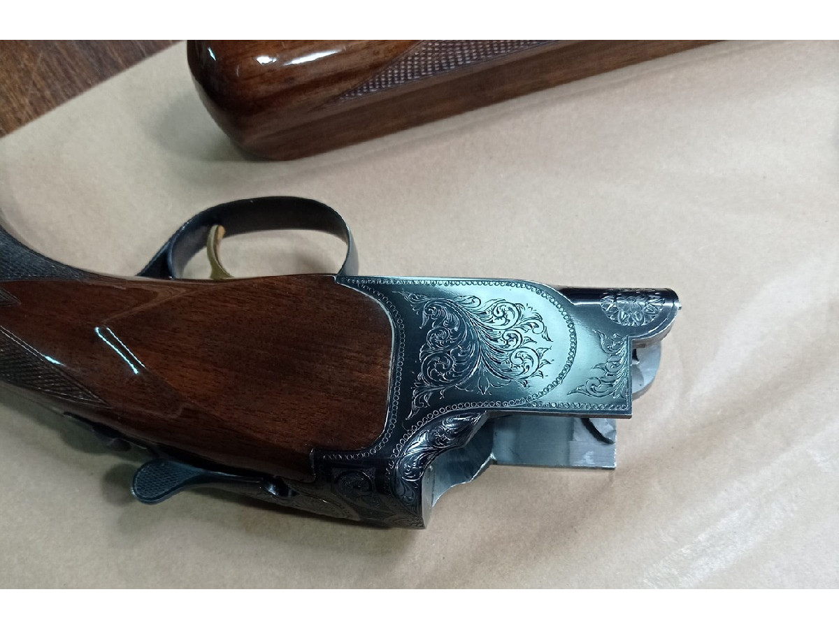 Escopeta de tiro al plato Miroku. Cañones de 76 mm. Choques de una y dos estrellas. Culata Montecarlo. Selector de cañón. Arma de muy buena calidad con excelente terminación. Estado de funcionamiento perfecto y magníficamente conservada. Tiene unos 40 años aunque no se ha usado mucho.
