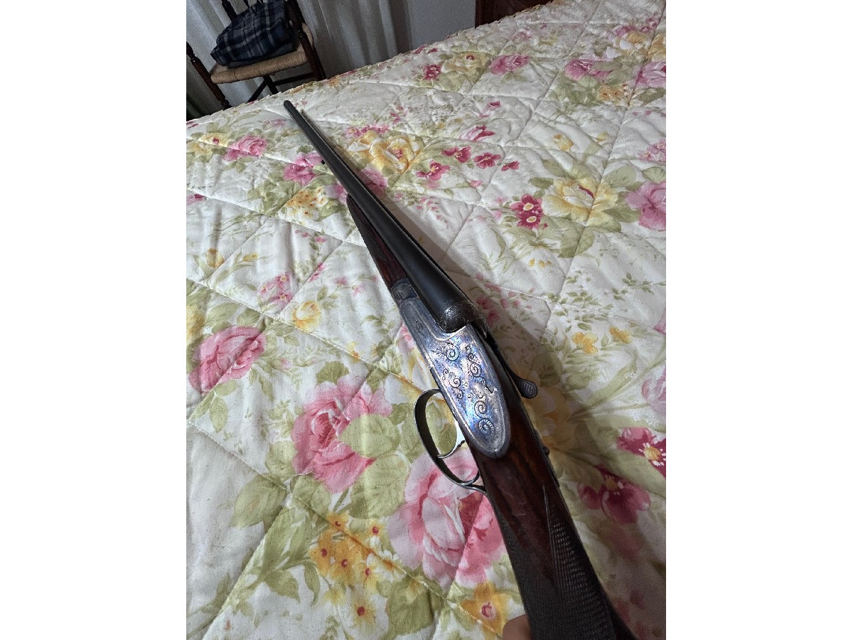 Escopeta paralela Garbi en buen estado, cañón con 3y 1 estrellas, monogatillo, expulsores automáticos y pletina larga.