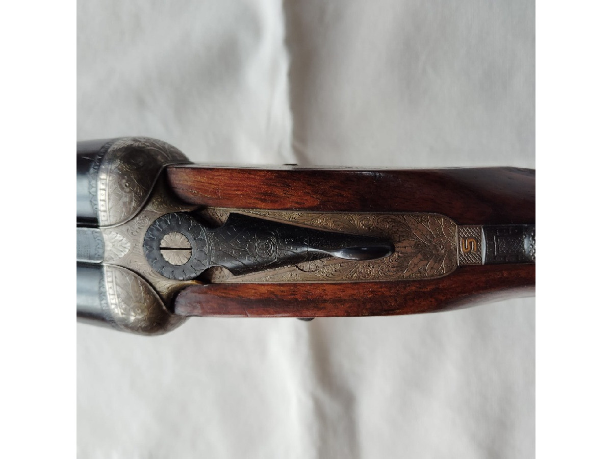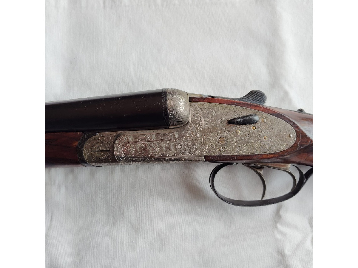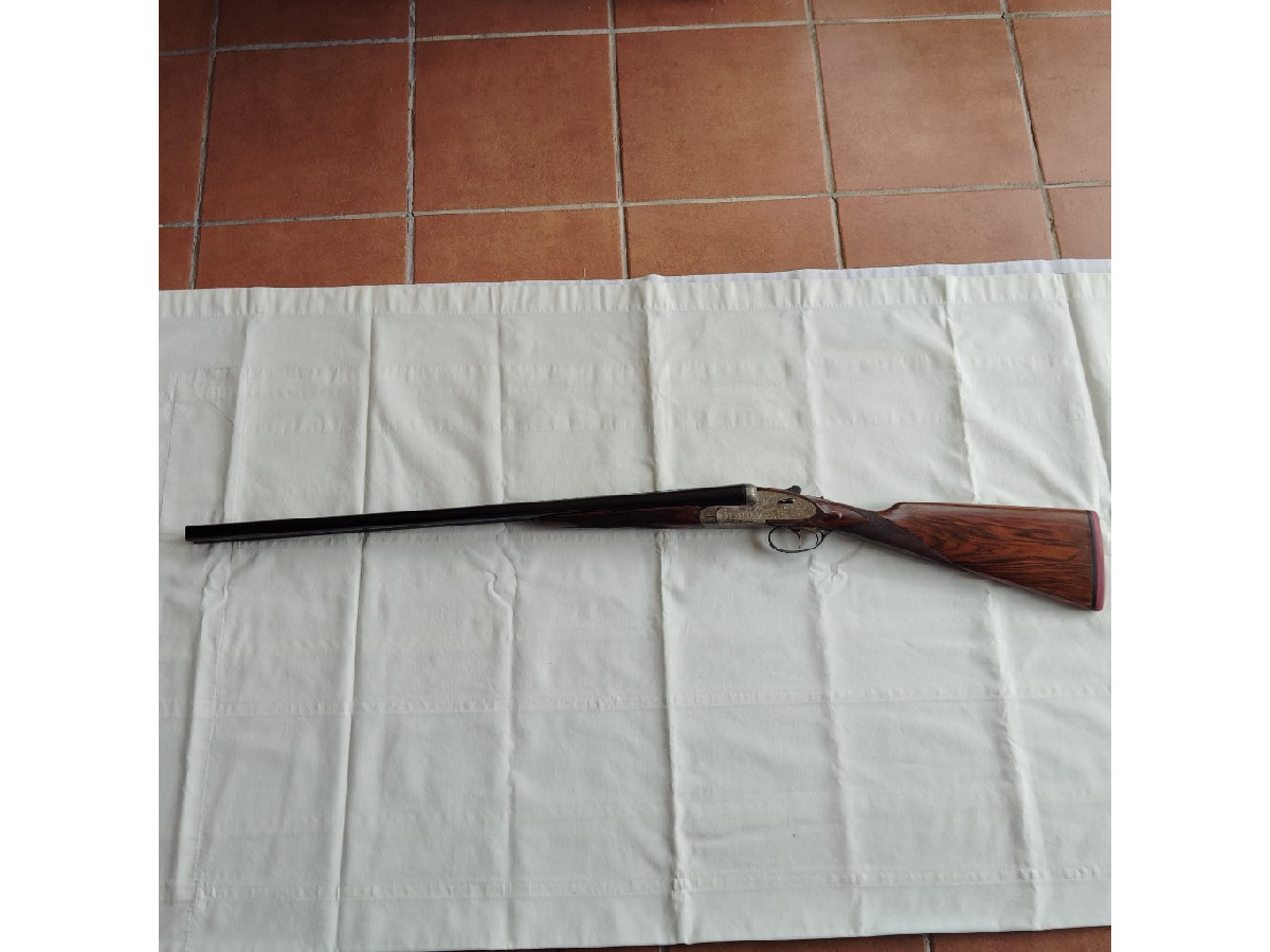 Escopeta Grulla 215, calibre 12, yuxtapuesta. Muy poco uso, muy cuidada. Excelente madera. Una y tres estrellas.