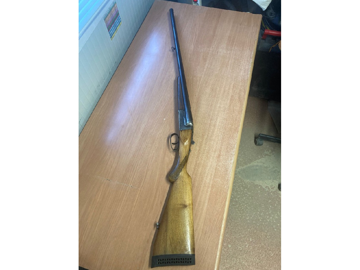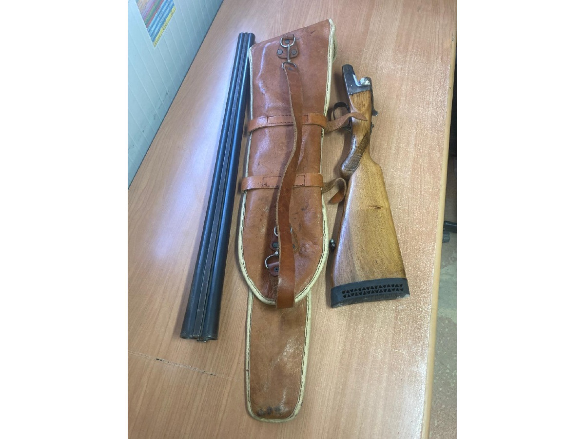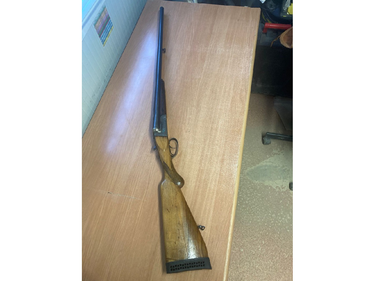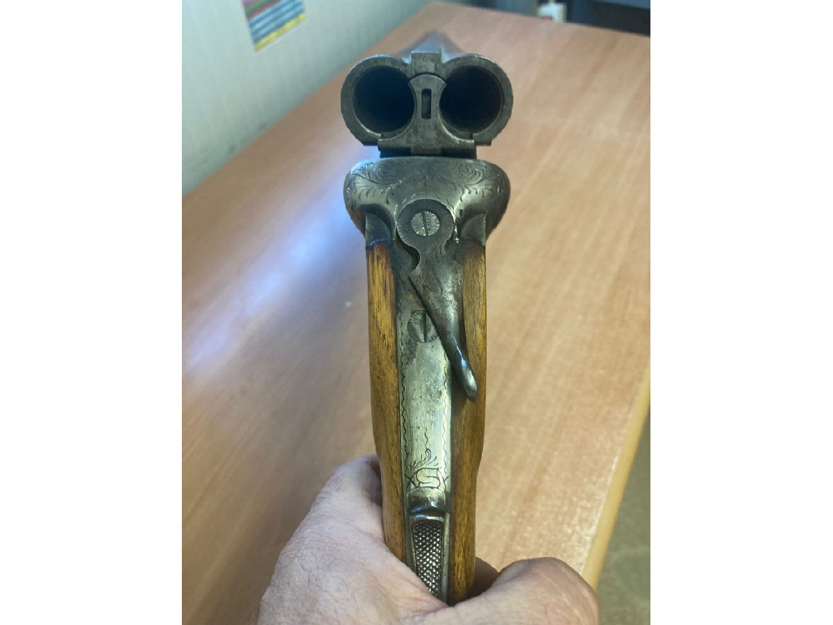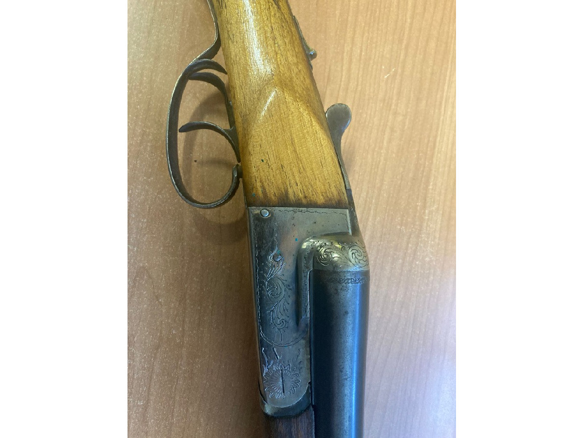 Escopeta paralela I.G., cal. 12/70, cañón 70 cm, no expulsora y dos gatillos. Incluye funda de cuero artesanal.
