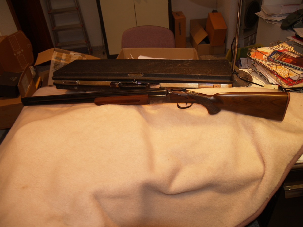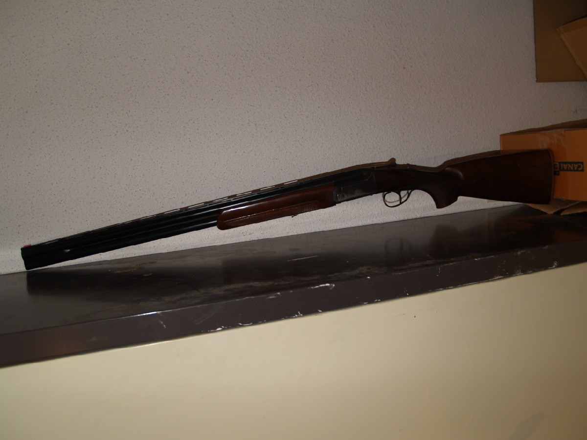 Escopeta superpuesta de calibre 12 de la casa Kronson, específica fundamentalmente para caza. Choque de cañones 1 y 3 estrellas. Cañón aligerado. En buen estado general. Dispone de maletín. Resido en Zaragoza. Portes no incluidos.