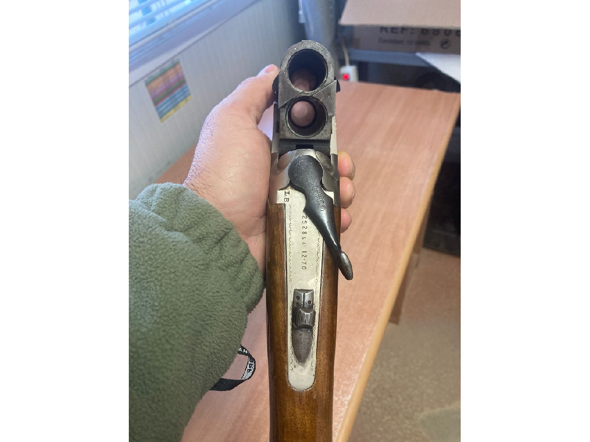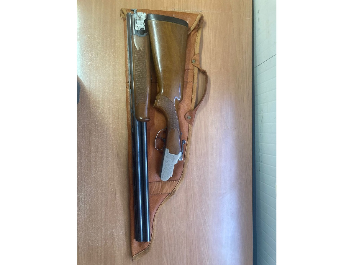 Escopeta superpuesta Lanber, cal. 12/70, 3 y 1 estrella, cañón 71 cm, expulsora y un solo gatillo, incluye funda de cuero artesanal.