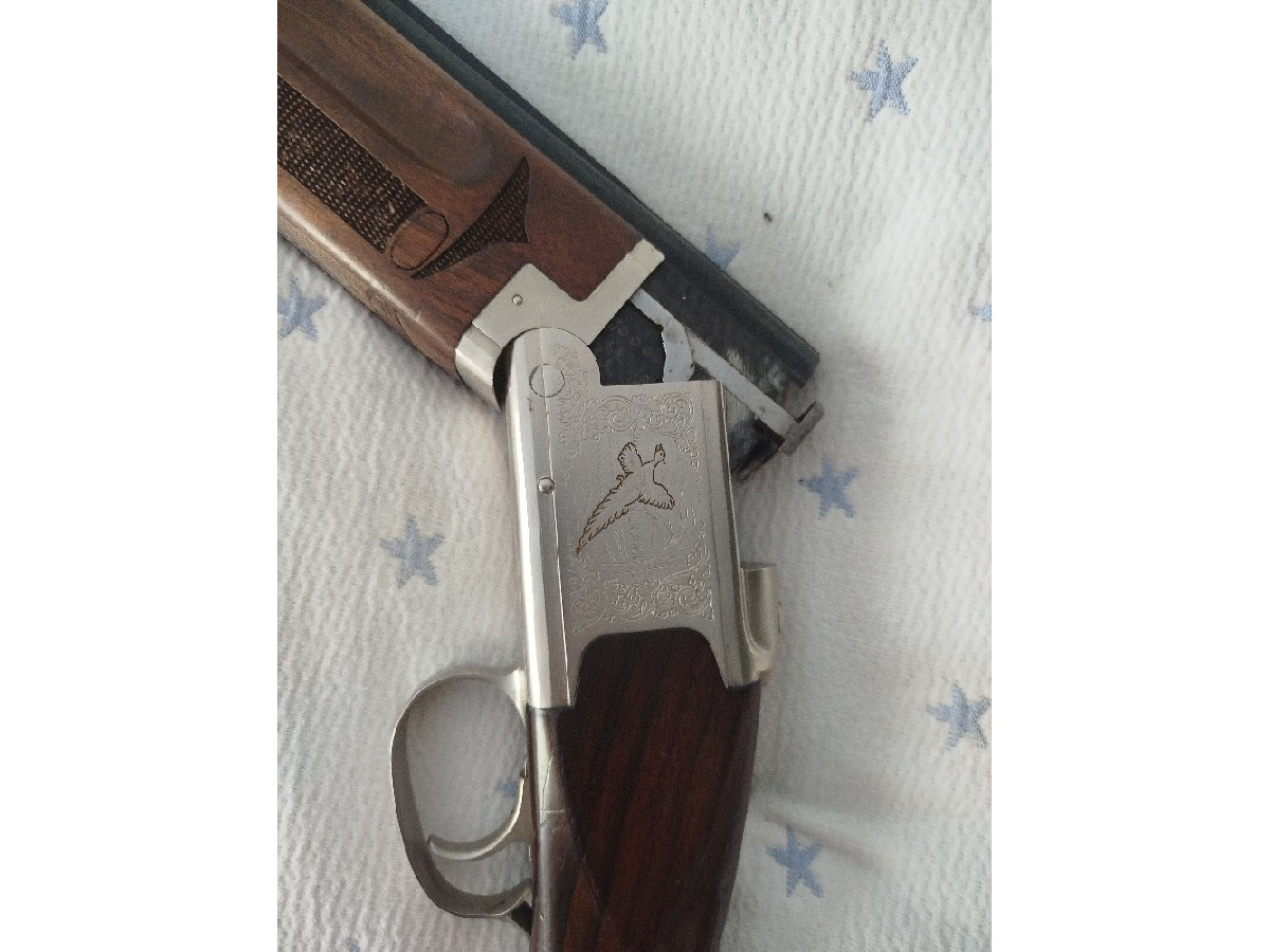 Superpuesta Laurona especial becada. Longitud cañón 60 cm. Cañón inferior estriado y superior con polichokes de 5, 4 y 3 estrellas. Recámara magnum. En muy buen estado. Solo tiene unas rayaduras en la culata por una caída hace tiempo. Usada habitualmente, pero tengo varias armas y me encuentro más cómodo con semiautomática.