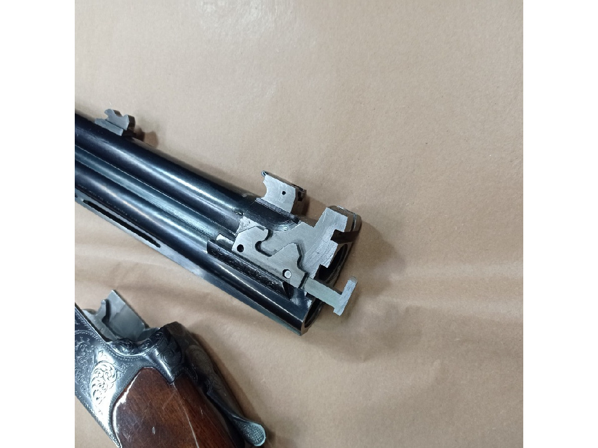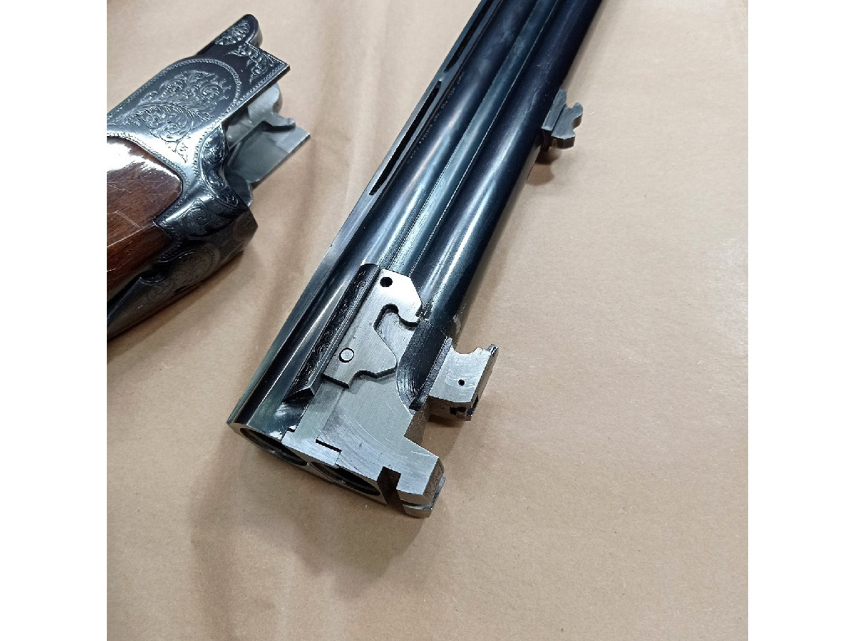 Escopeta especial para tiro al plato. Arma de muy buena calidad. Tiene unos 40 años pero funciona magníficamente, percute perfecto, expulsa perfecto y los cañones están en muy buen estado. Los cañones son de 76 cm y tiene selector de tiro. Se entrega en maleta rígida.