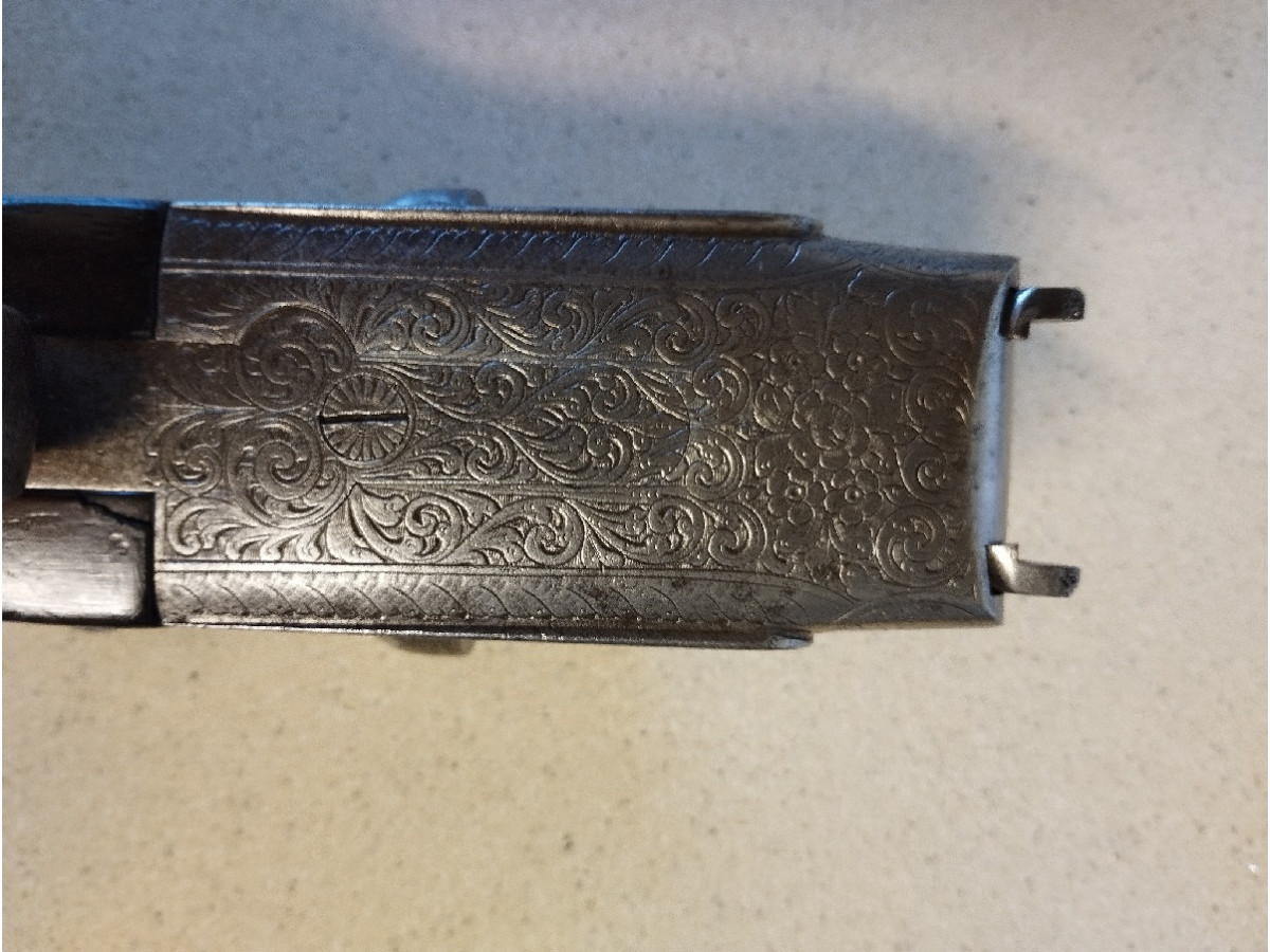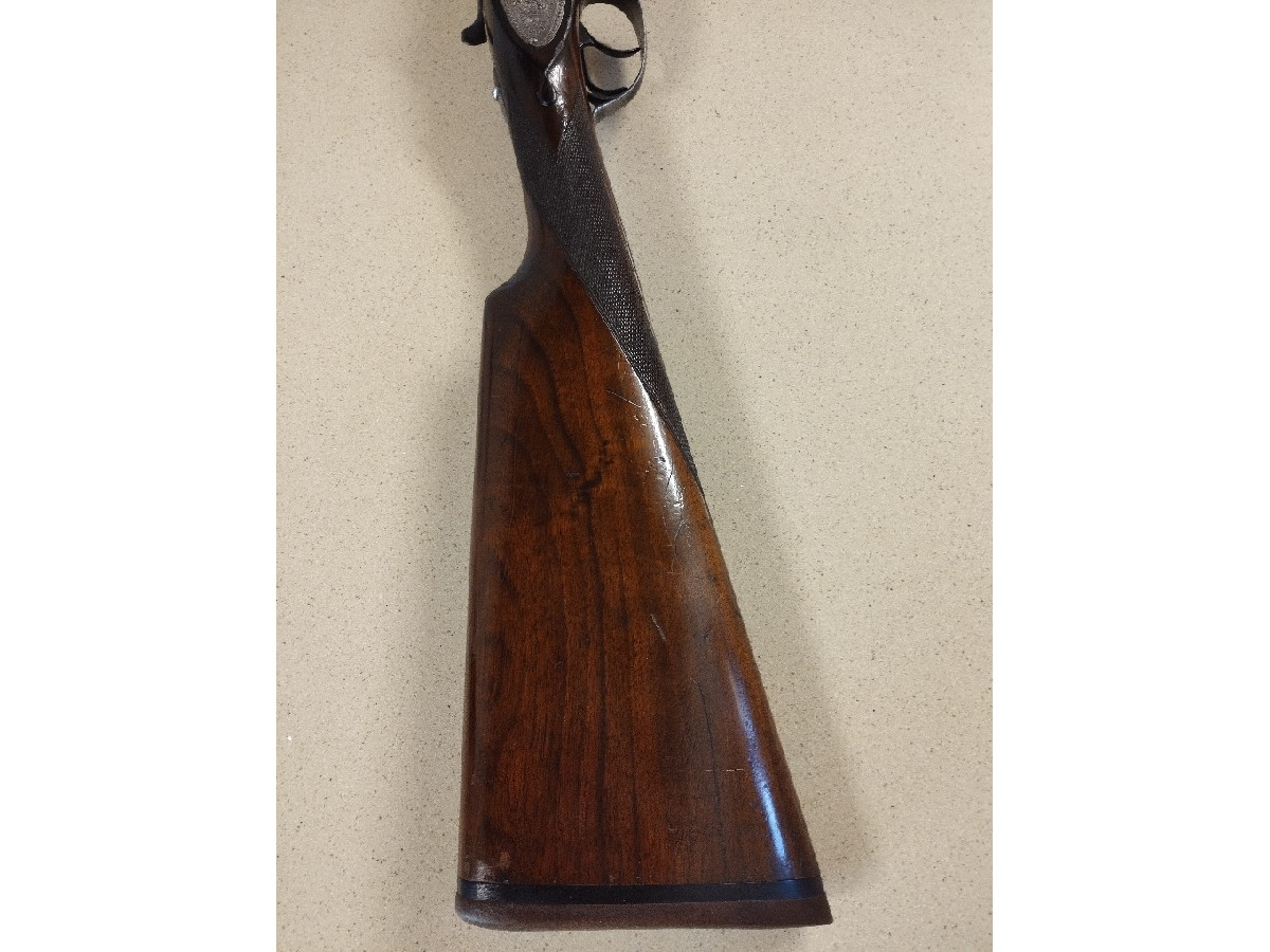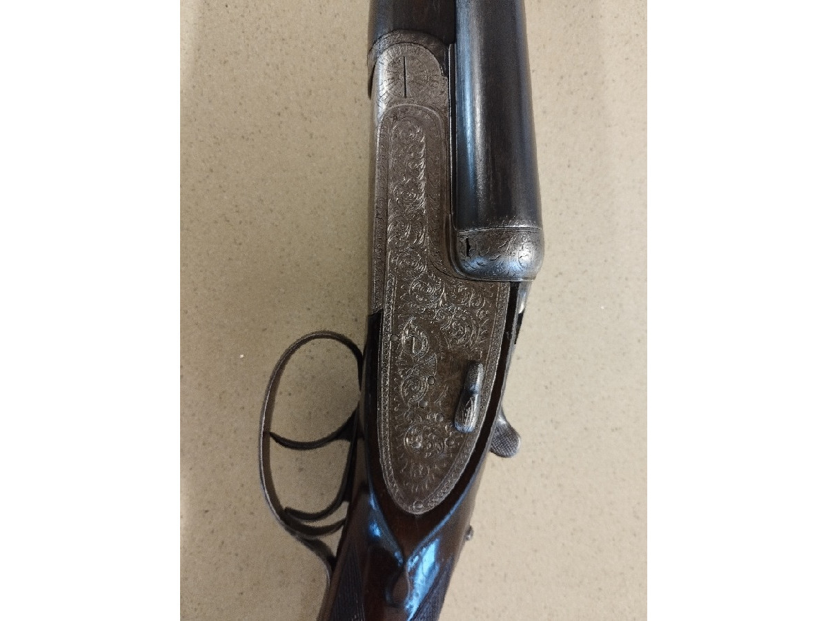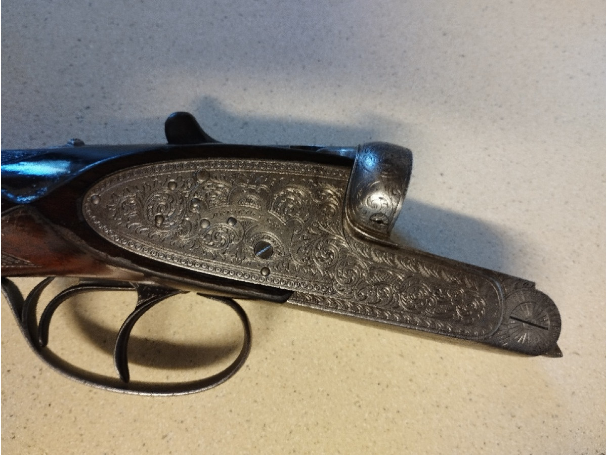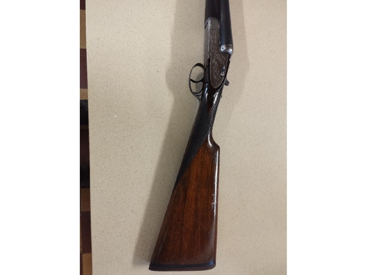 Paralela Arrieta de pletina larga, bonitos grabados, calibre 12, expulsora, 70 cm cañón, 3 y 1 estrella. Fue fabricada por encargo.