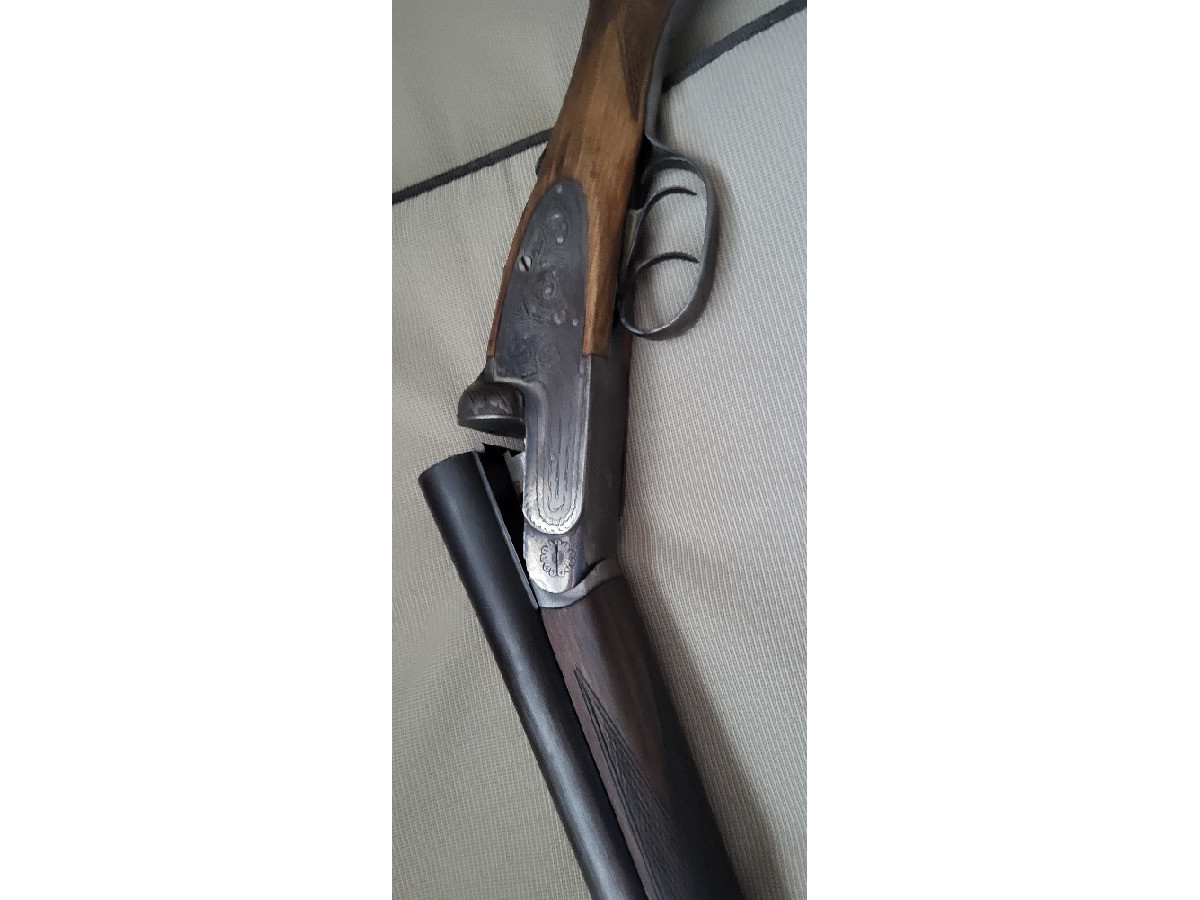 Escopeta paralela restaurada de maderas, Eusebio Arizaga -Plasencia Marca FA ,71 de cañón del calibre 12 con 1 y 3 estrellas fijas en muy buen estado