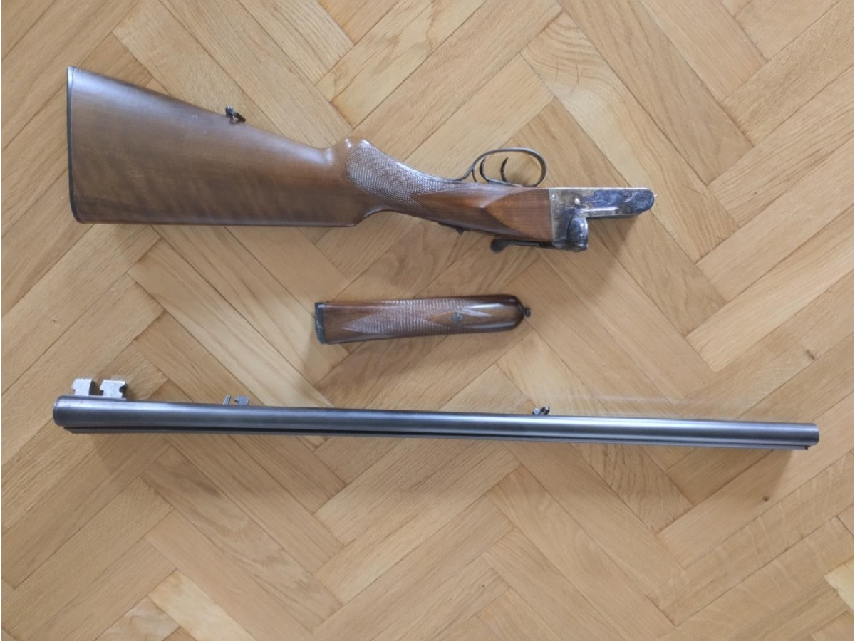 Escopeta paralela calibre 12 mm. marca F.A. de Éibar, antigua pero con muy poco uso, ya que nunca se ha usado para la caza.