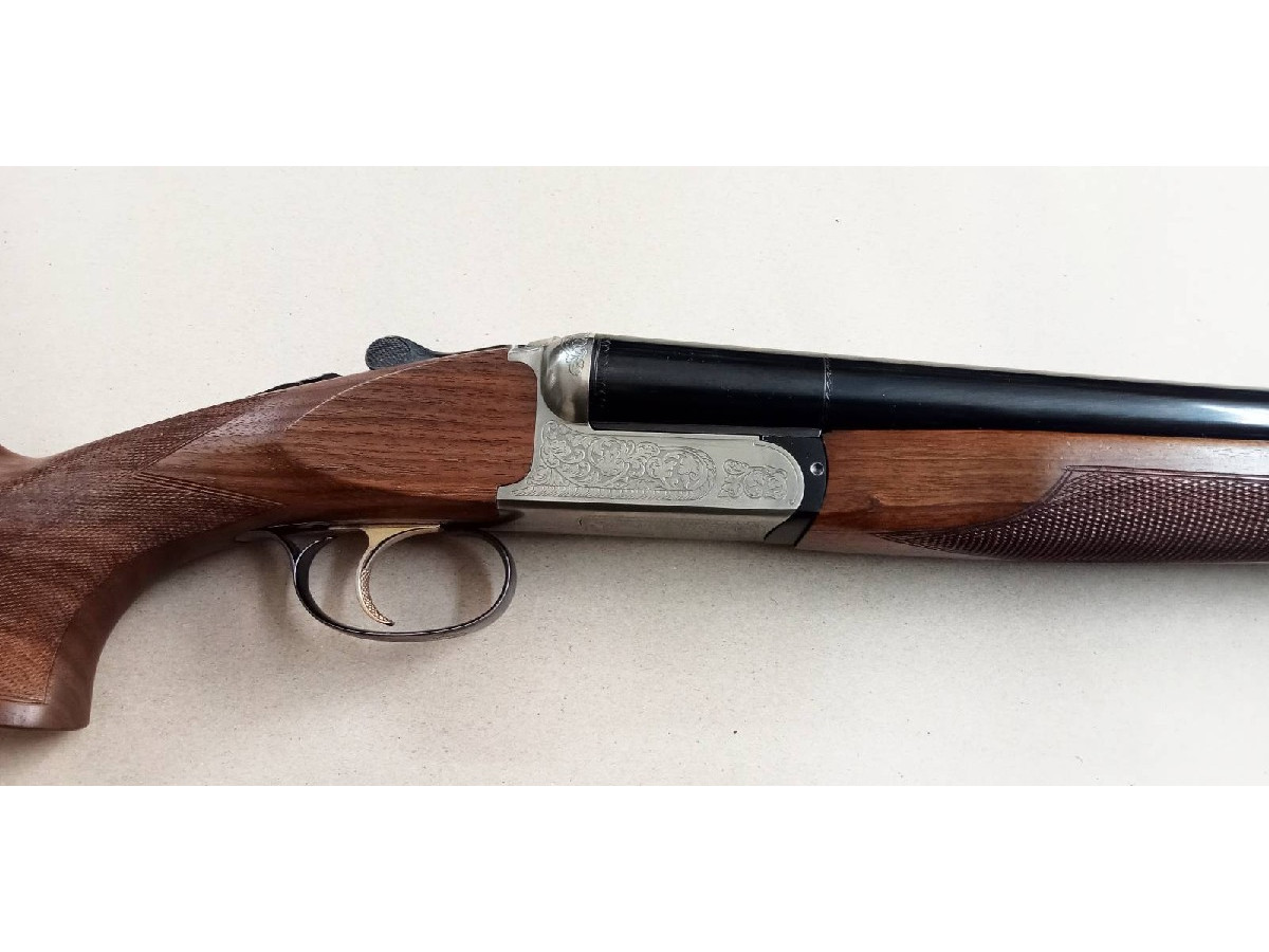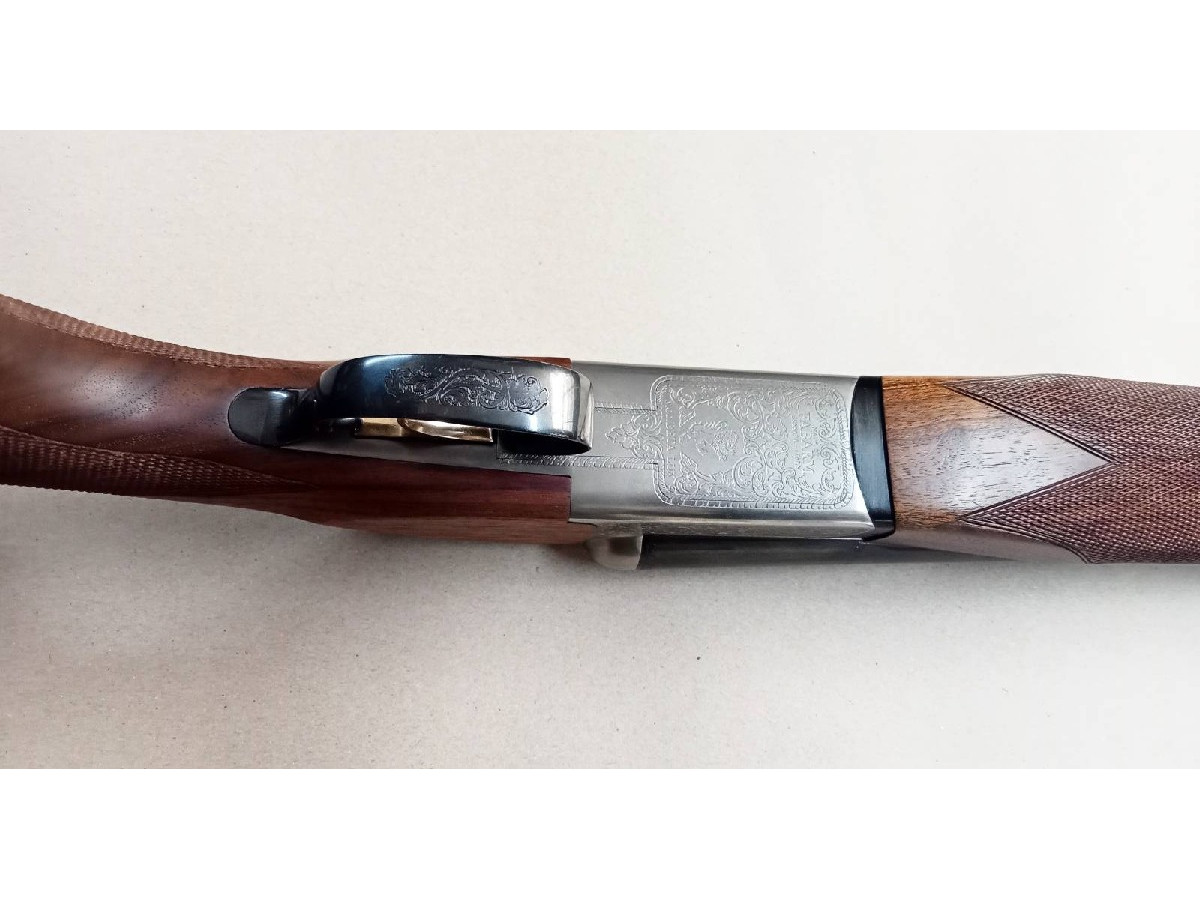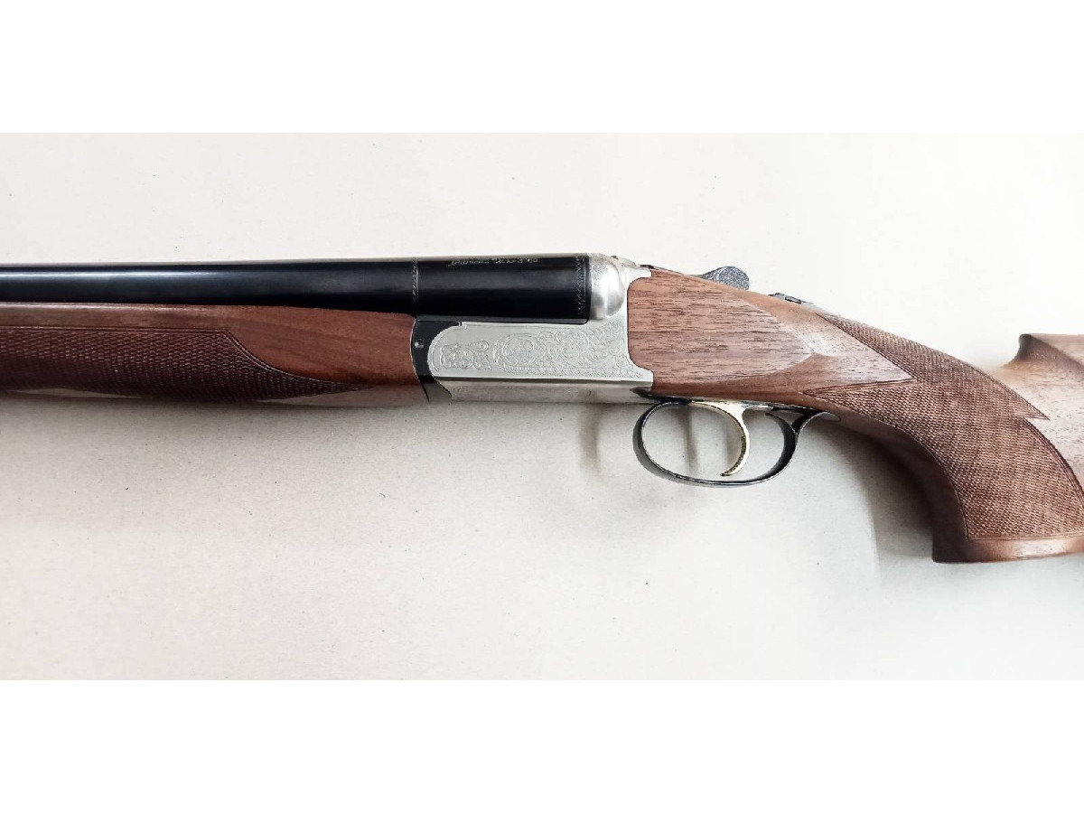Escopeta paralela Fabarm Beta Lux. Calibre 12/76. Recámara magnum. Cañón de 71 cm. 5 chokes interiores + llave. Expulsora. Monogatillo. Selector de tiro. Incluye estuche. En perfecto estado.
