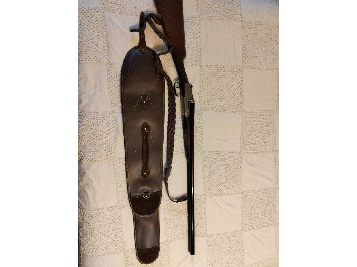 Escopeta paralela marca José Uriguen, calibre 12, cañón de 70 cm, doble gatillo. Buen estado. Con correa, funda y cinturón para cartuchos. Incluye baquetas de limpieza. La escopeta está en la zona de Medina de Pomar, Burgos.
