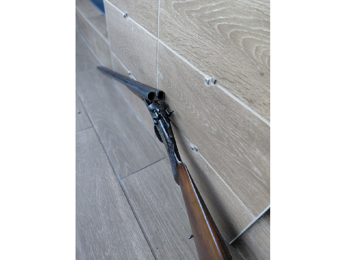 Escopeta paralela marca BOPE con perrillos antigua, cañón derecho estriado para la caza de la becada, buen plomeo.