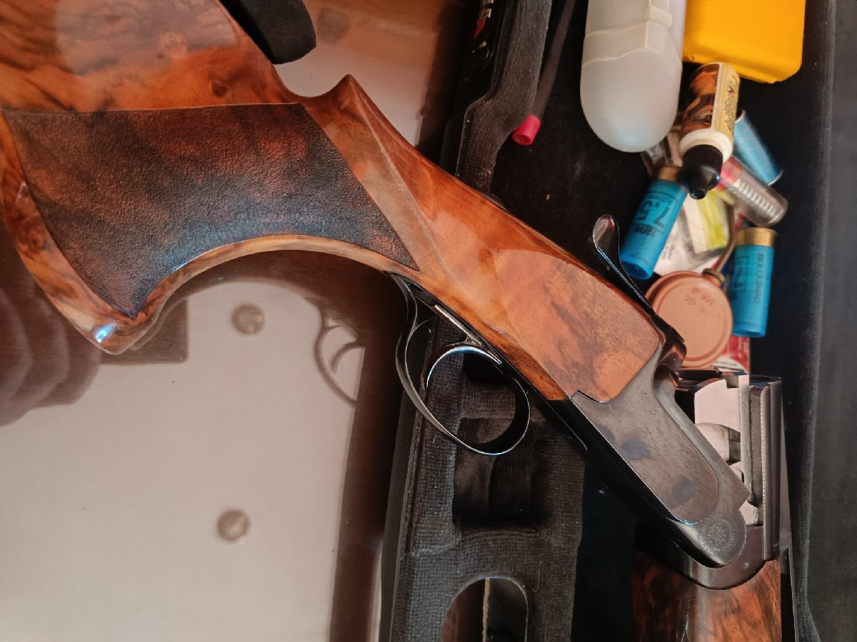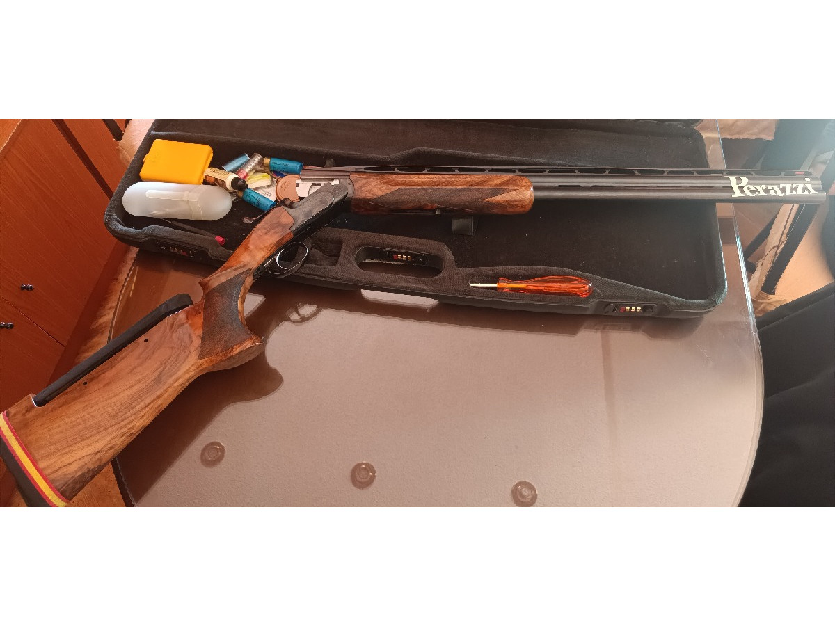 Escopeta Perazzi alta competición, tanto para plato como para pichón. Caja original Perazzi. Culata Batano (Ibi Alicante). Polichock original Perazzi. Nogal circasiano. Buenísimo estado, se vende por falta de uso.