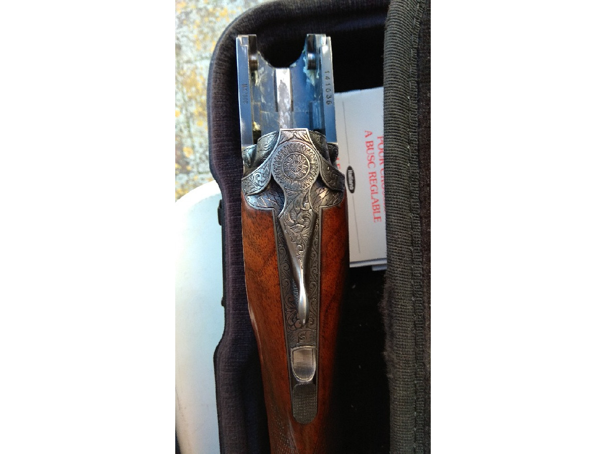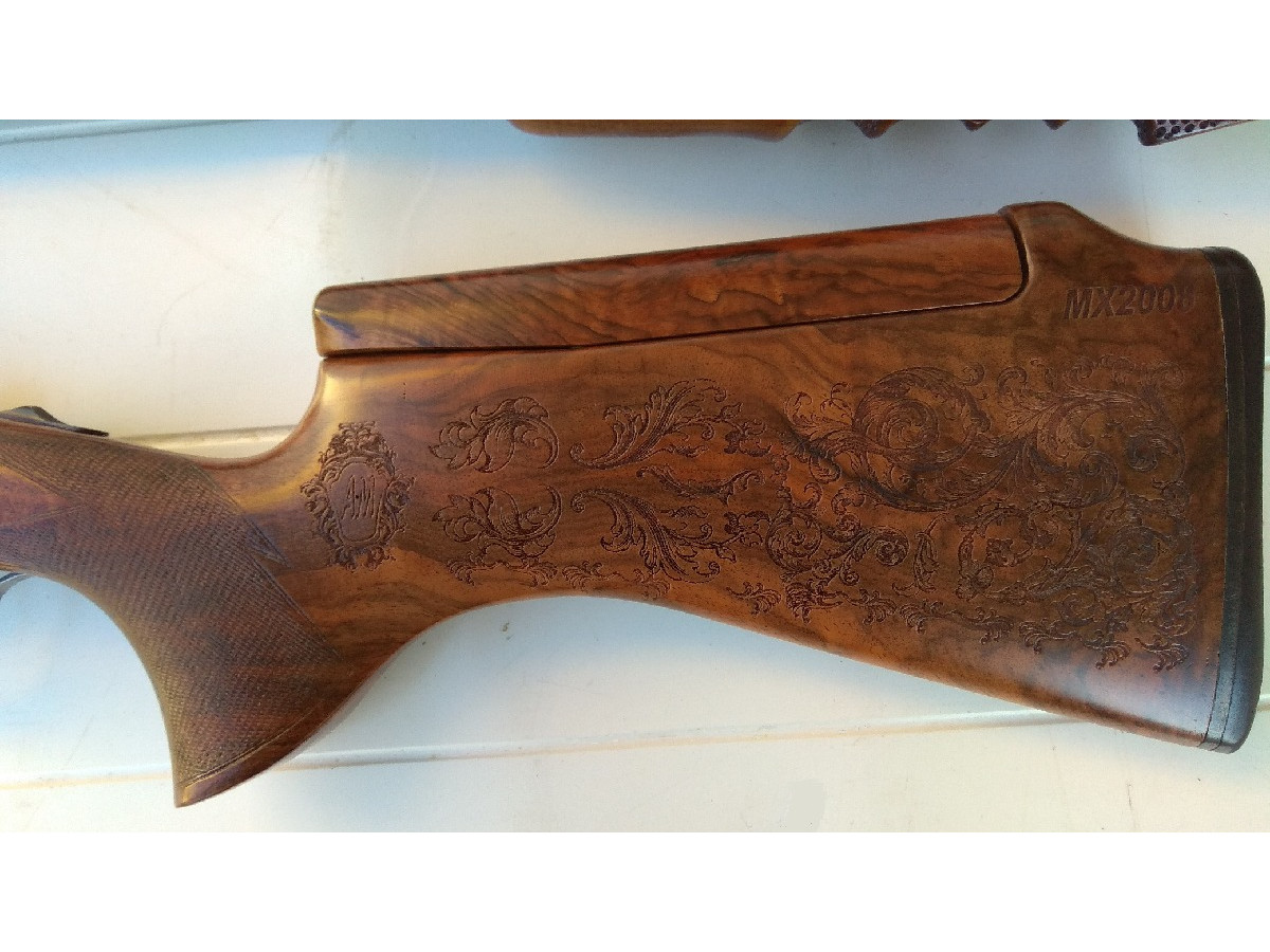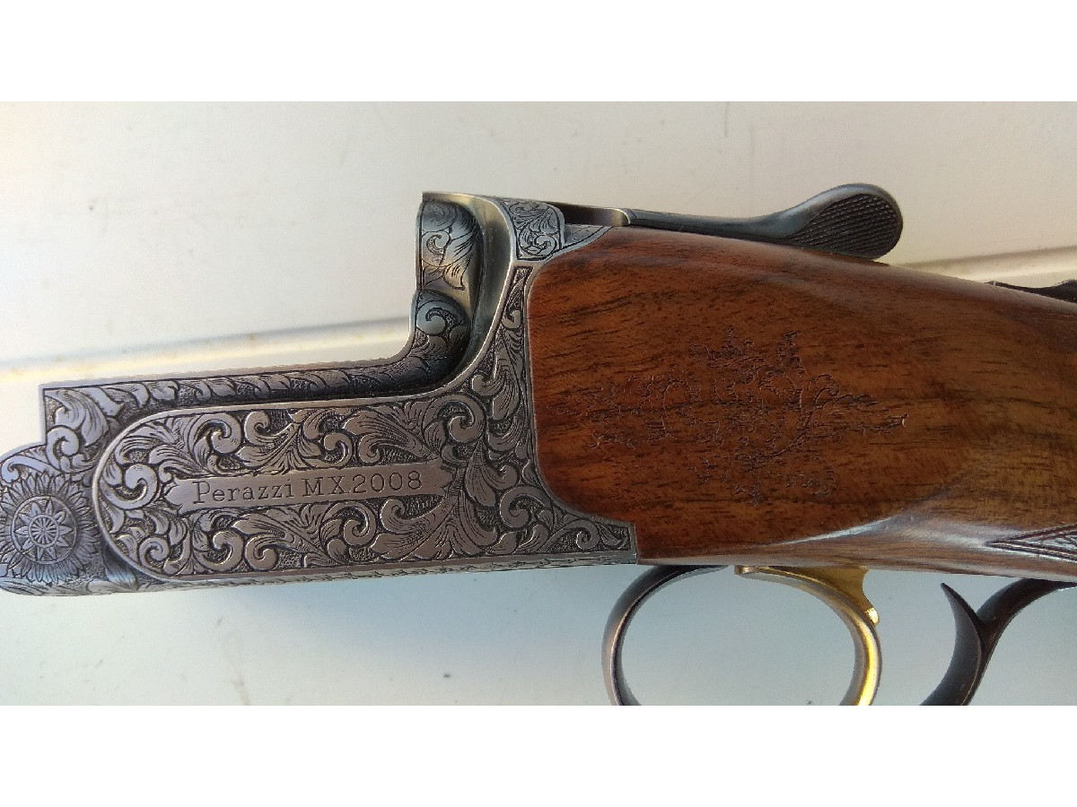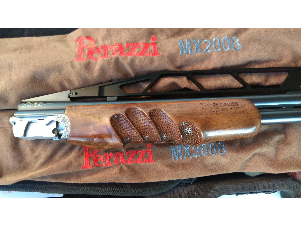 Escopeta Perazzi MX-2008 Trap, el coste de los grabados + culatas + guardamanos supera los 6.500€. Escopeta única en óptimo estado. MatrÃcula 141*** con cañones de 75 cm, cal 12/70, ánimas 18,4, poli choques Invector en el primer disparo, 6 originales Perazzi 0, 2, 4, 6, 8 y 10 décimas + 2 Gémini con freno de boca de 5 y 7 décimas. El choque del segundo disparo es de 1*, creo que de 10 décimas. Se entrega con maletÃn original Perazzi, 3 bandas regulables en 5 posiciones diferentes, 1 de 1,7 cm, otra de 2 cm. Y la banda alta que permite disparar sin agachar la cabeza (ideal para los que usamos gafas con graduación y además para no cometer el error más común, el de levantar la cara), 2 culatas de madera, una de las cuales grabada a mano y una tercera culata técnica Perman con 4 lomos diferentes. BaterÃa extraible con muelles helicoidales. Plomeo perfecto. Se puede probar.