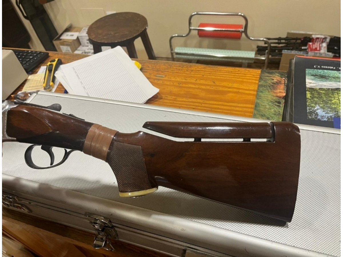 Escopeta de tiro al plato, icono de este deporte. Un modelo de escopeta que ha ganado campeonatos del mundo y que sirvió de inspiración para las actuales Perazzi. Un escopetón para todo el que quiera conseguir romper platos con regularidad. Escopeta muy bien balanceada, con el pavonado en perfecto estado y preparada para que te hartes a pegar tiros. Le falta el expulsor del primer cartucho, cosa que se consigue en cualquier armería. Culata con lomo regulable vertical y horizontal.